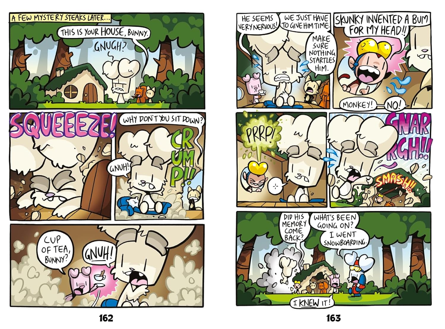 Monkey and the gang are on a hunt to find Bunny, after he mysteriously disappeared . . . On their search they'll be bamboozled by Old Bunny, Neanderbunny, the mysterious Shadow Bunny and the always-confusing Not Bunny. Will they ever find their faithful friend? It's a rollicking race to the rightful rabbit in this cornucopia of chuckles!