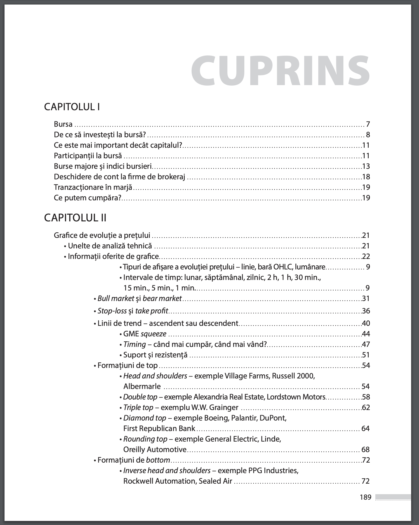 Cartea se adresează începătorilor precum și avansaților în trading la bursă.