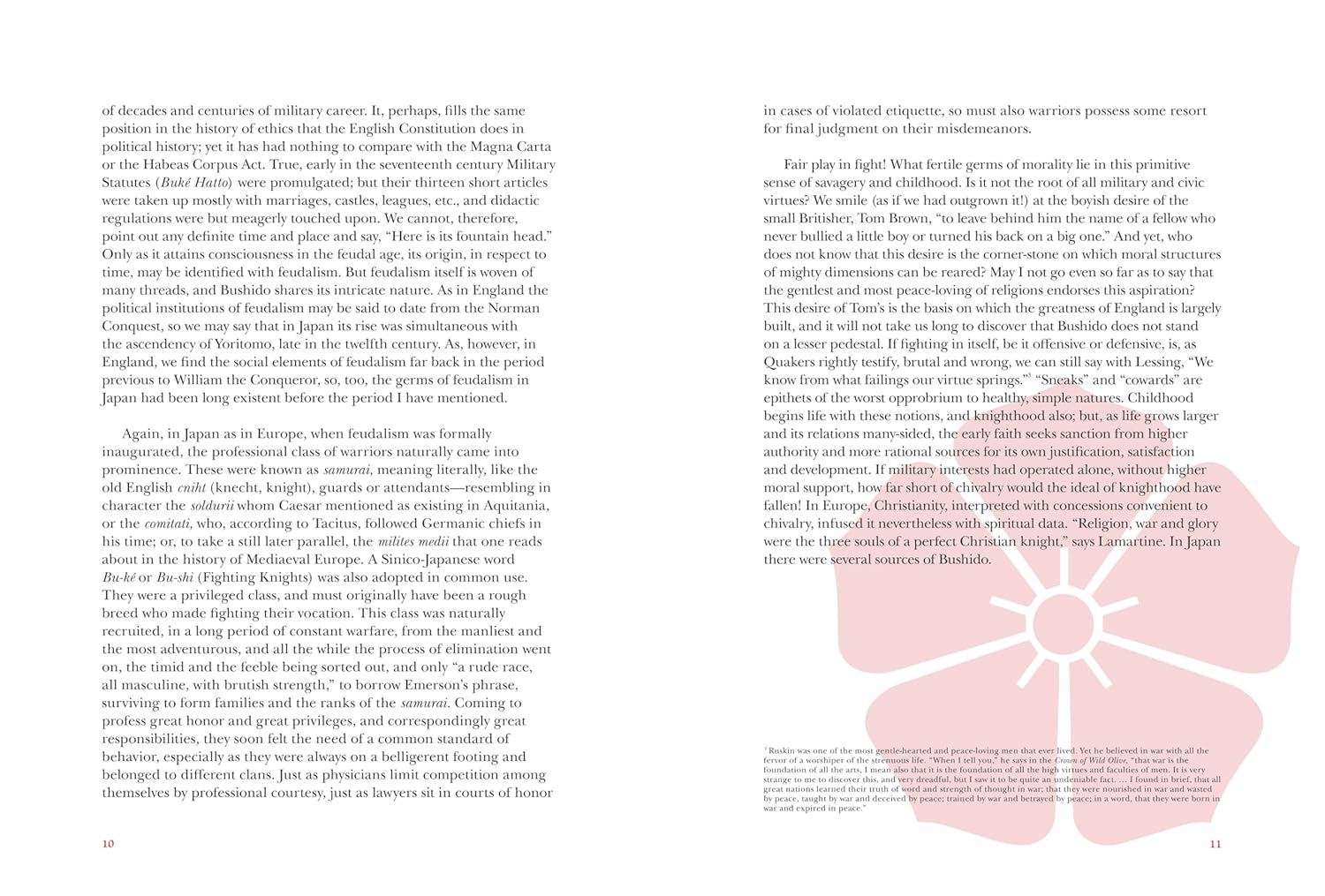 “Chivalry is a flower no less indigenous to the soil of Japan than cherry blossom” are the opening words to Inazo Nitobe’s Bushido: The Soul of Japan.