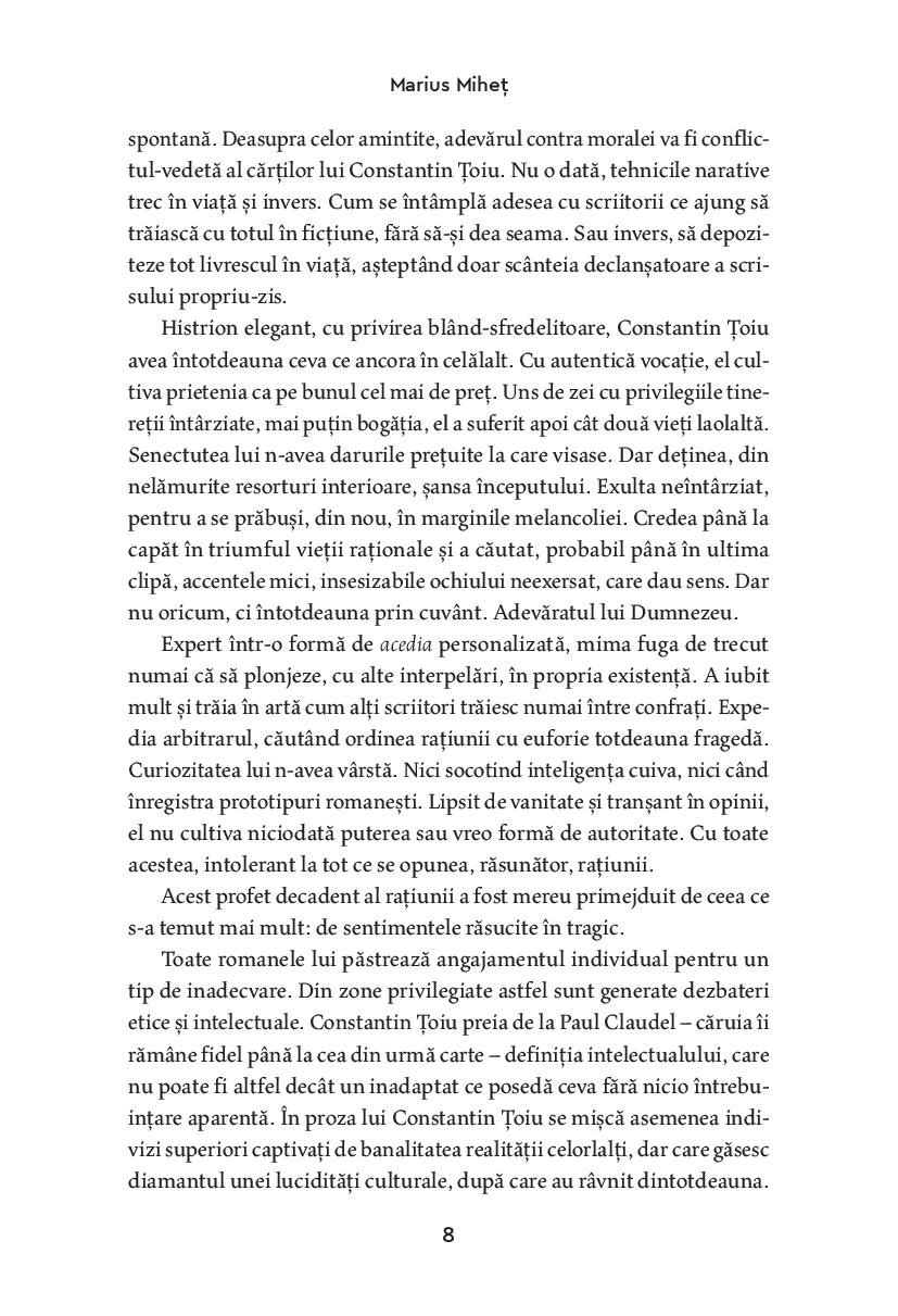 Constantin Țoiu demonstrează cum poți scrie un roman care să fie oricând revendicat de moderni și de postmoderni, de clasiciștii elitiști sau de romanticii asediați de eriniile sufletești.