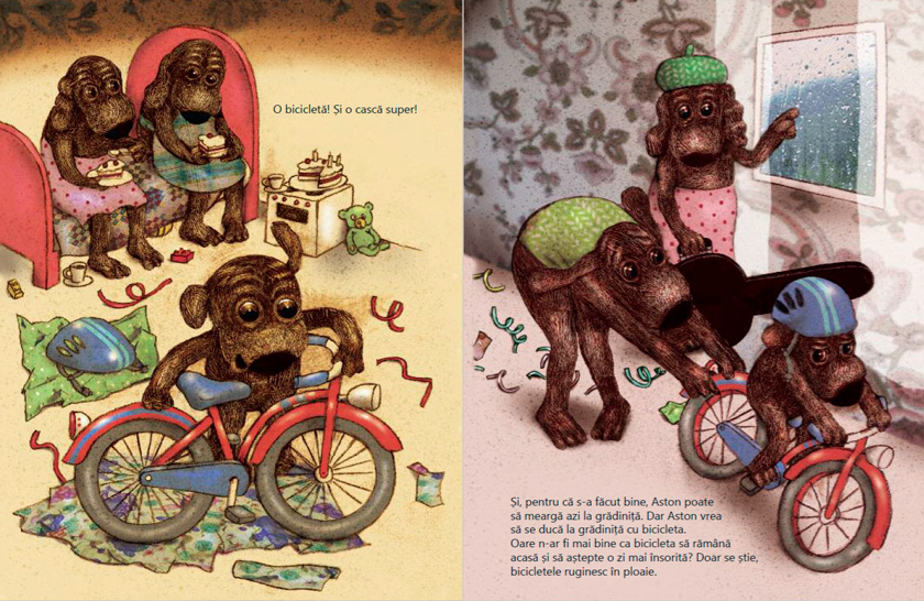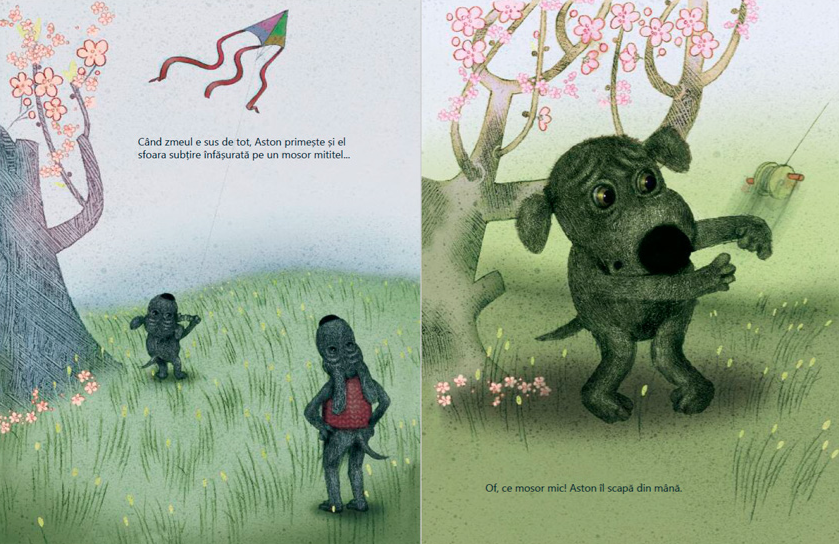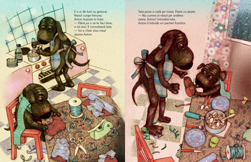 Oare ce mai face Aston? Sigur a mai crescut puțin de la povestea cu pietrele, Nu mai aduce acasă toți bolovanii care stau singuri afară, în frig, și toate bețele rătăcite prin iarbă pentru că i-a venit o idee și mai interesantă. Aston face cadouri. Multe.