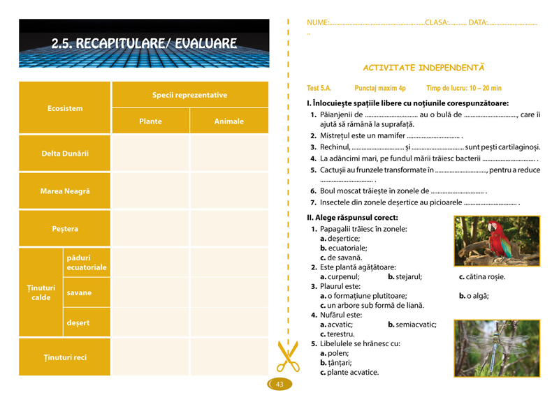 Activitate independentă – La finalul fiecărei lecții există sarcini de lucru cu diferite grade de dificultate care dau posibilitatea cadrelor didactice să lucreze diferențiat cu elevii, în funcție de abilitățile lor.