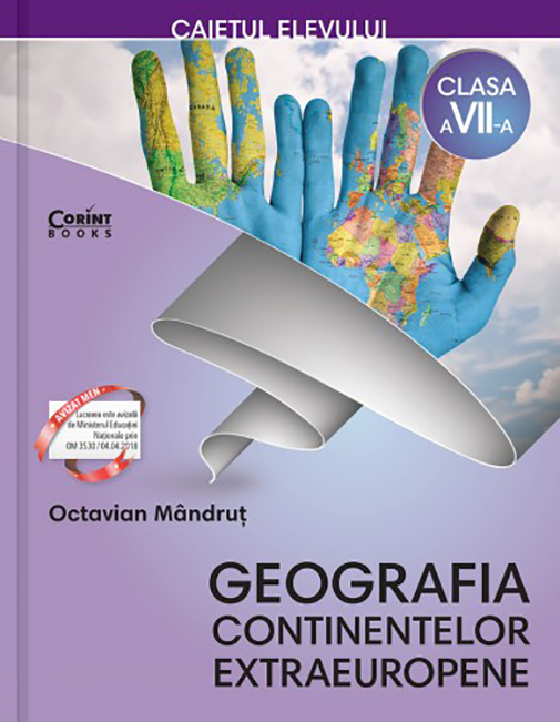 Geografia continentelor extraeuropene. Caietul elevului pentru clasa a VII-a facilitează formarea competențelor prevăzute de programa școlară și creșterea interesului pentru cunoaștere și călătorii.