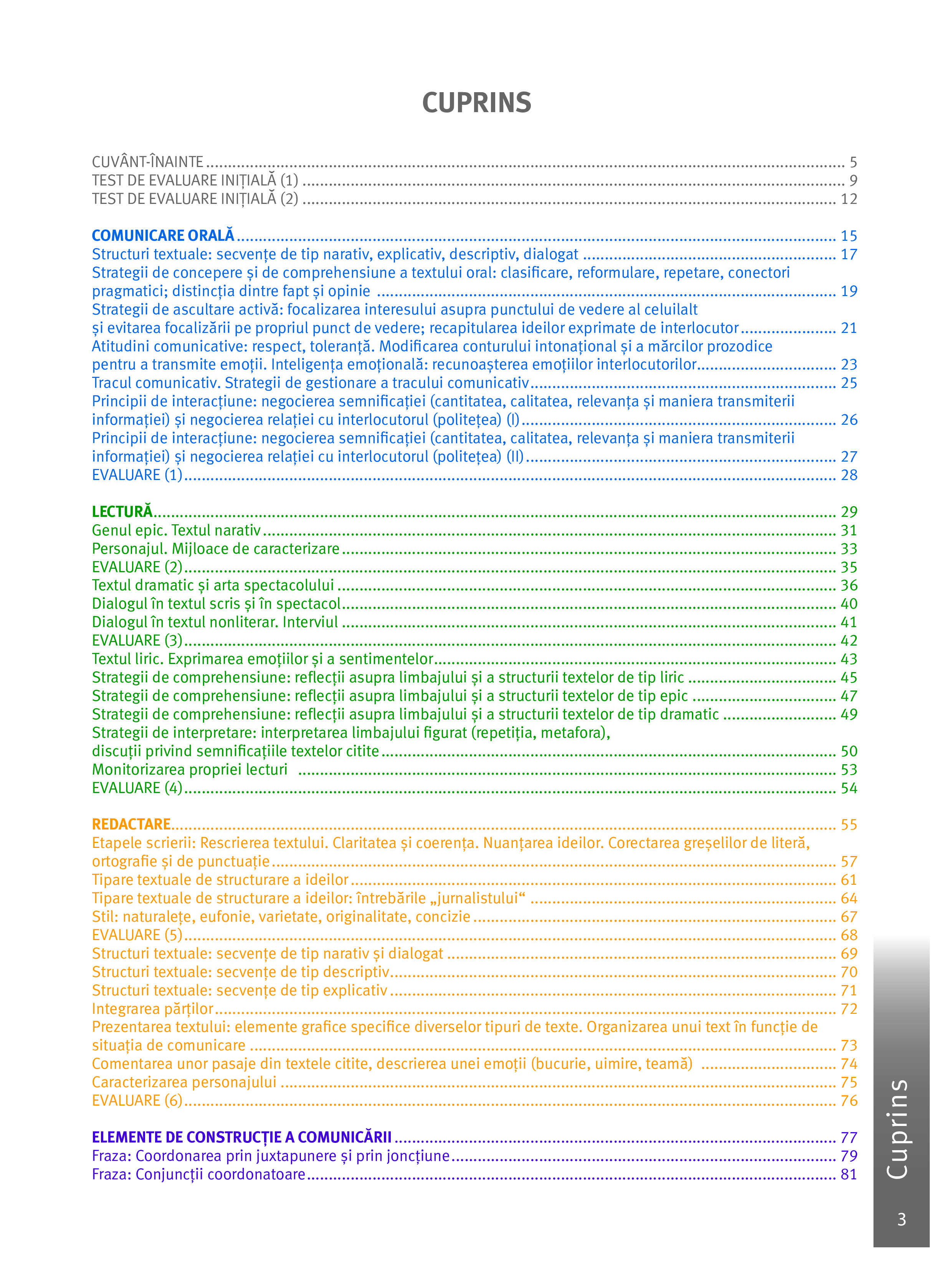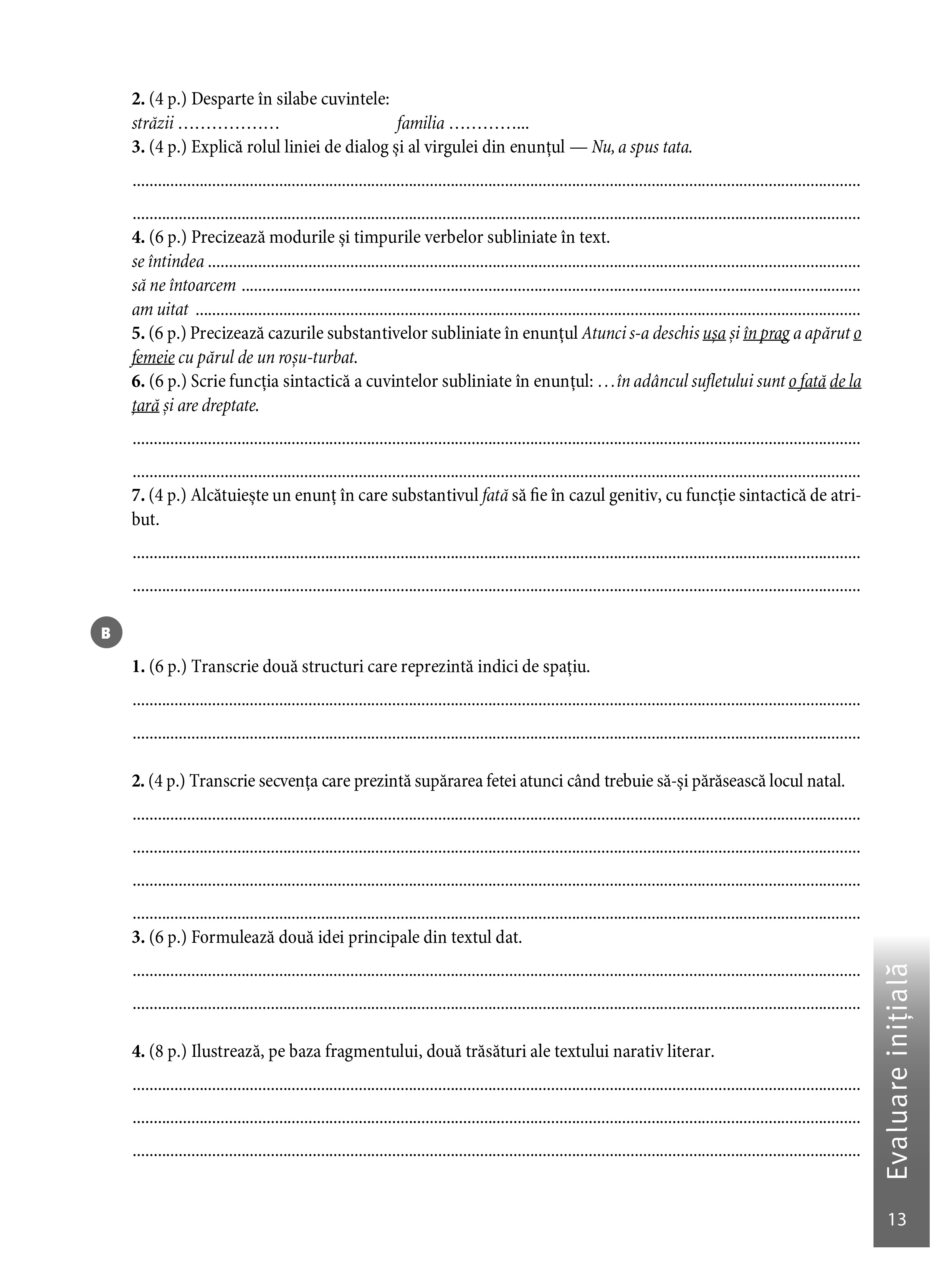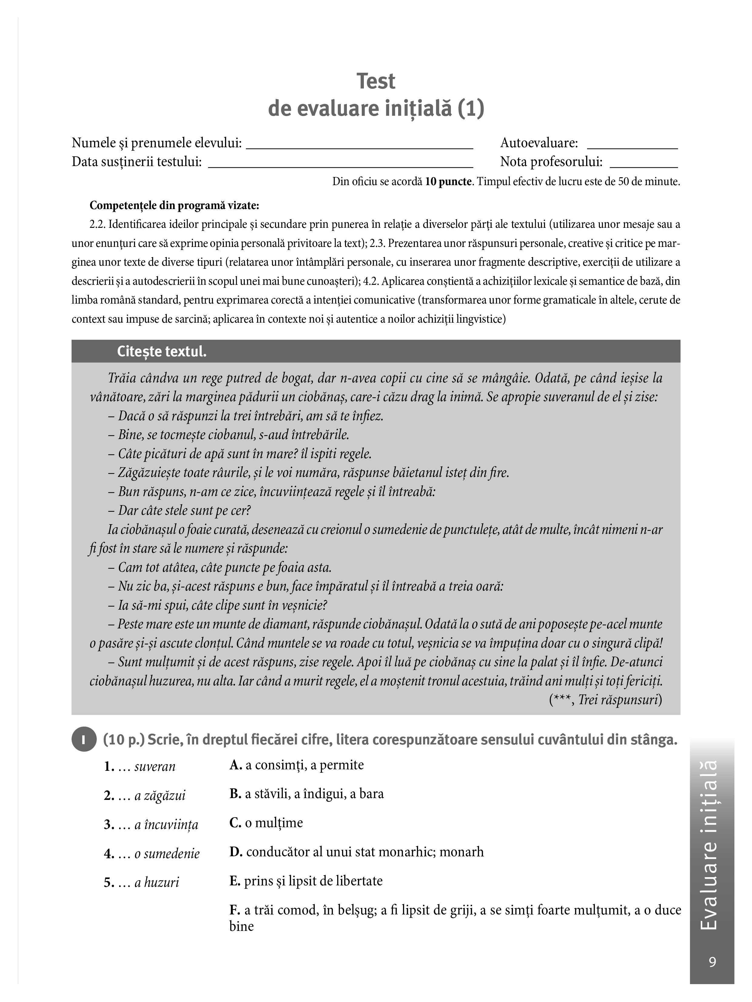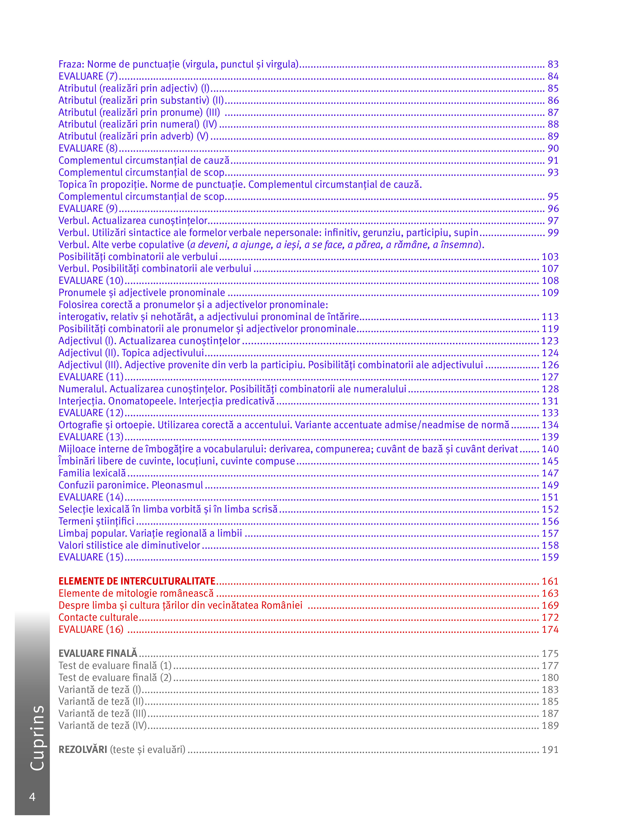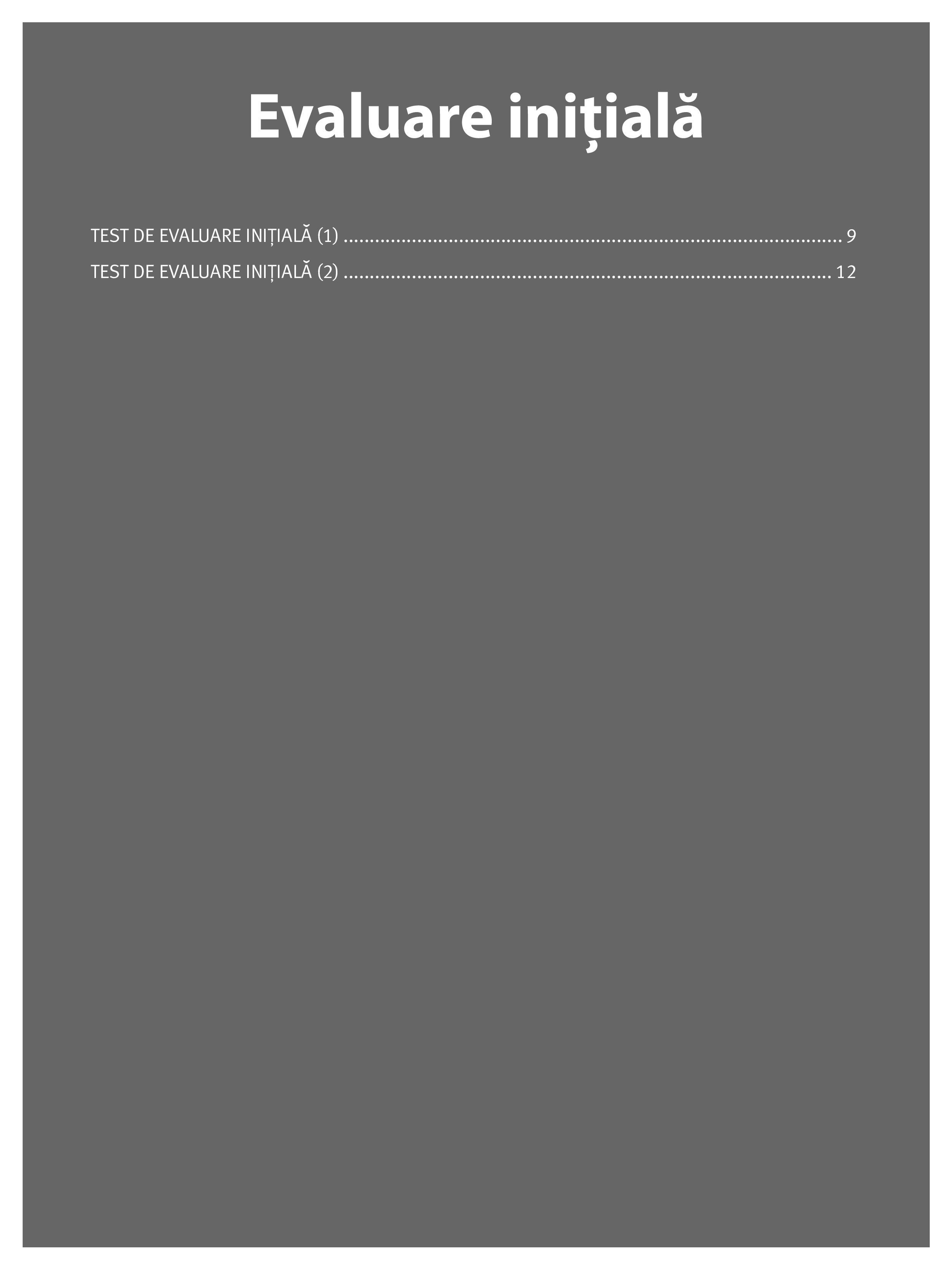 - cuprinde teste inițiale, teste sumative, teste de evaluare finală și variante de subiecte pentru teză.