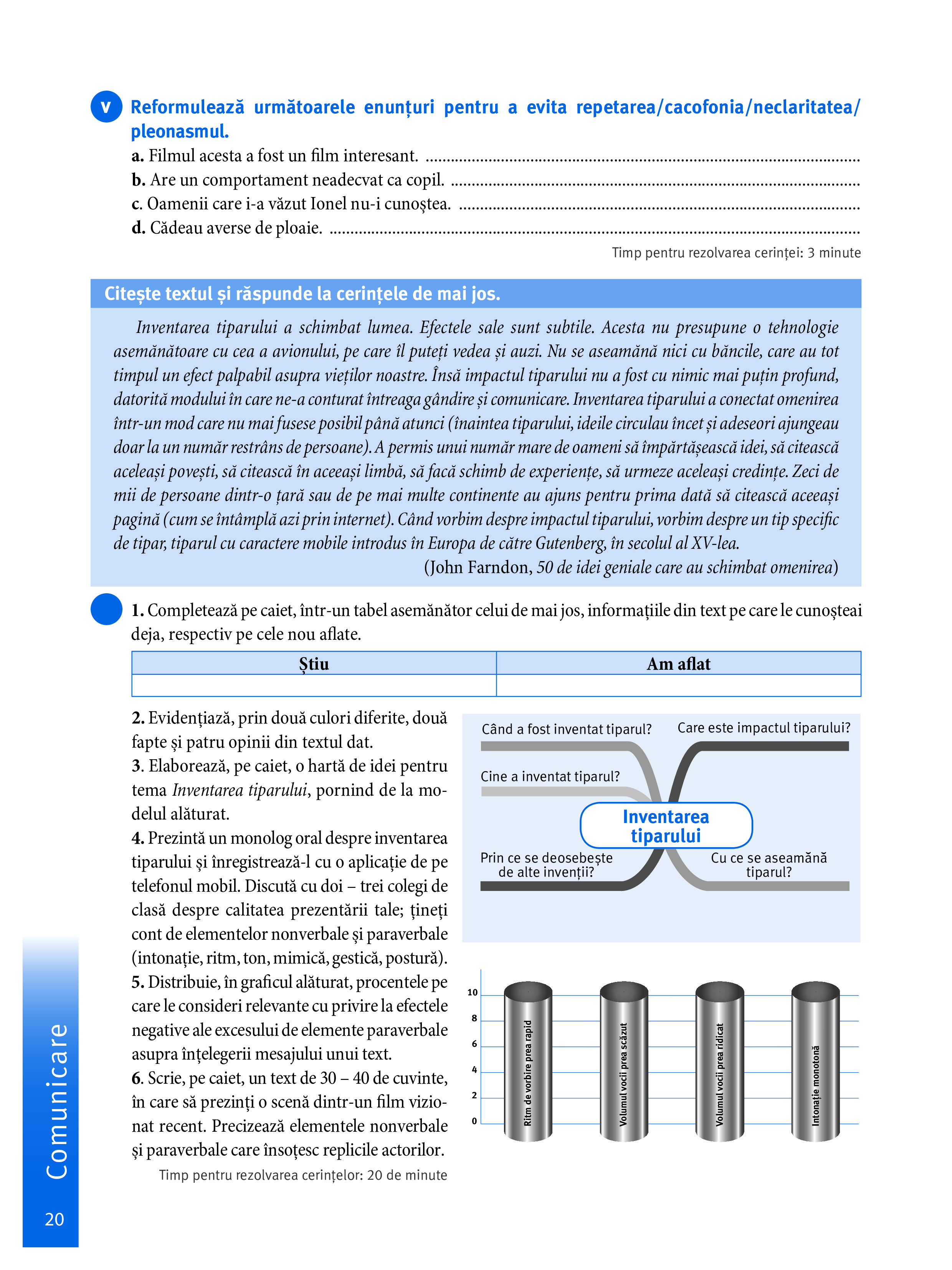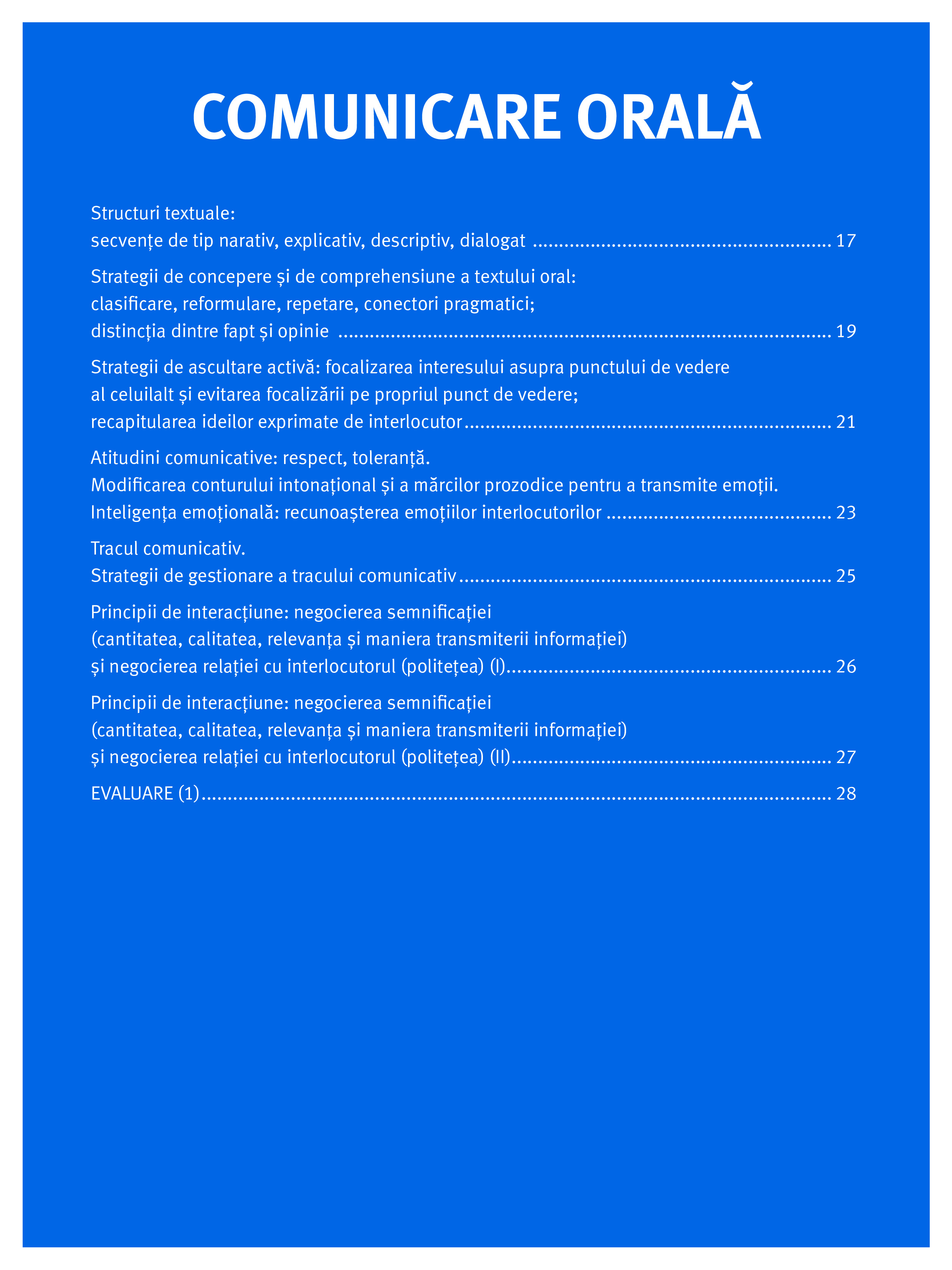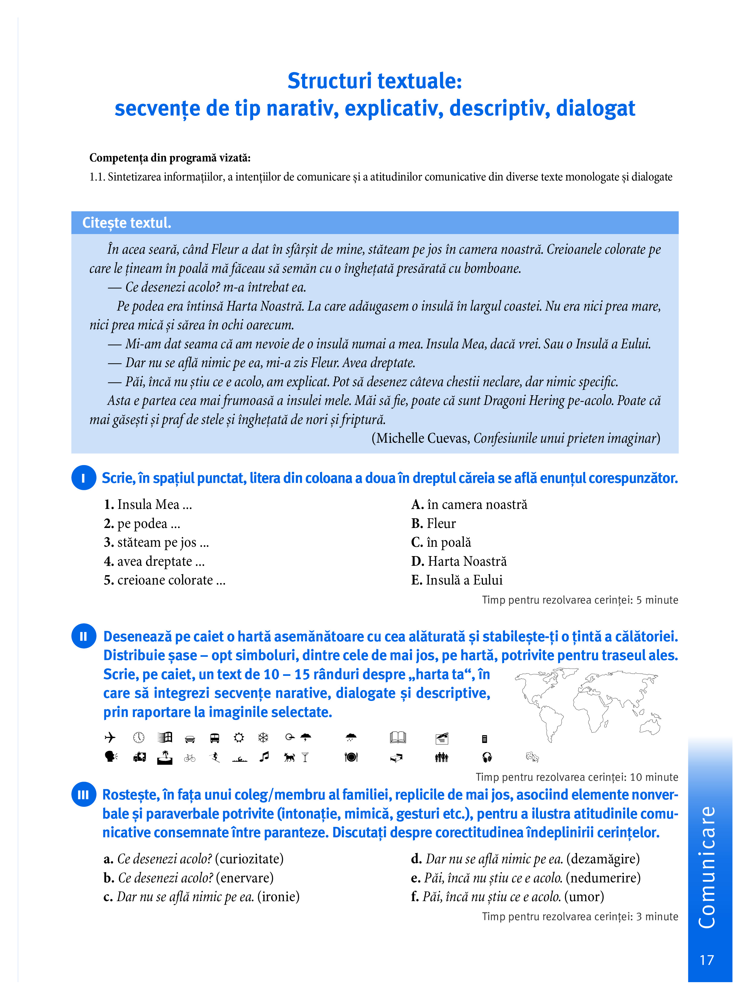 - propune exerciții pentru toate cele trei module prevăzute de programă: Literatură, Limba română și Comunicare, fără a pierde din vedere viziunea integrată a acestora și modelul comunicativ-funcționar recomandat;