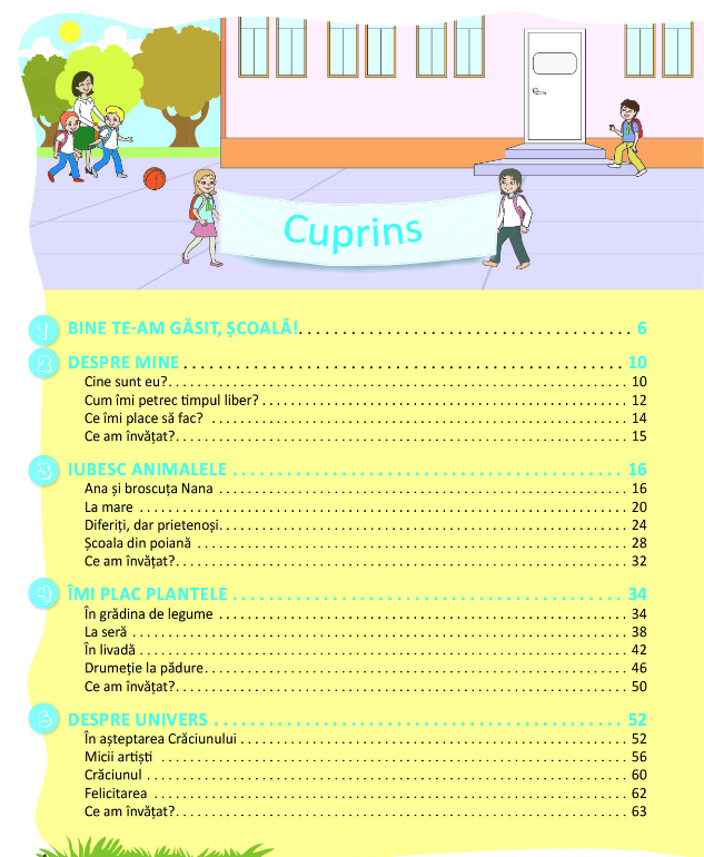 Acestea sunt structurate în 5 unități de învățare cu teme de interes pentru copilul din clasa pregătitoare.