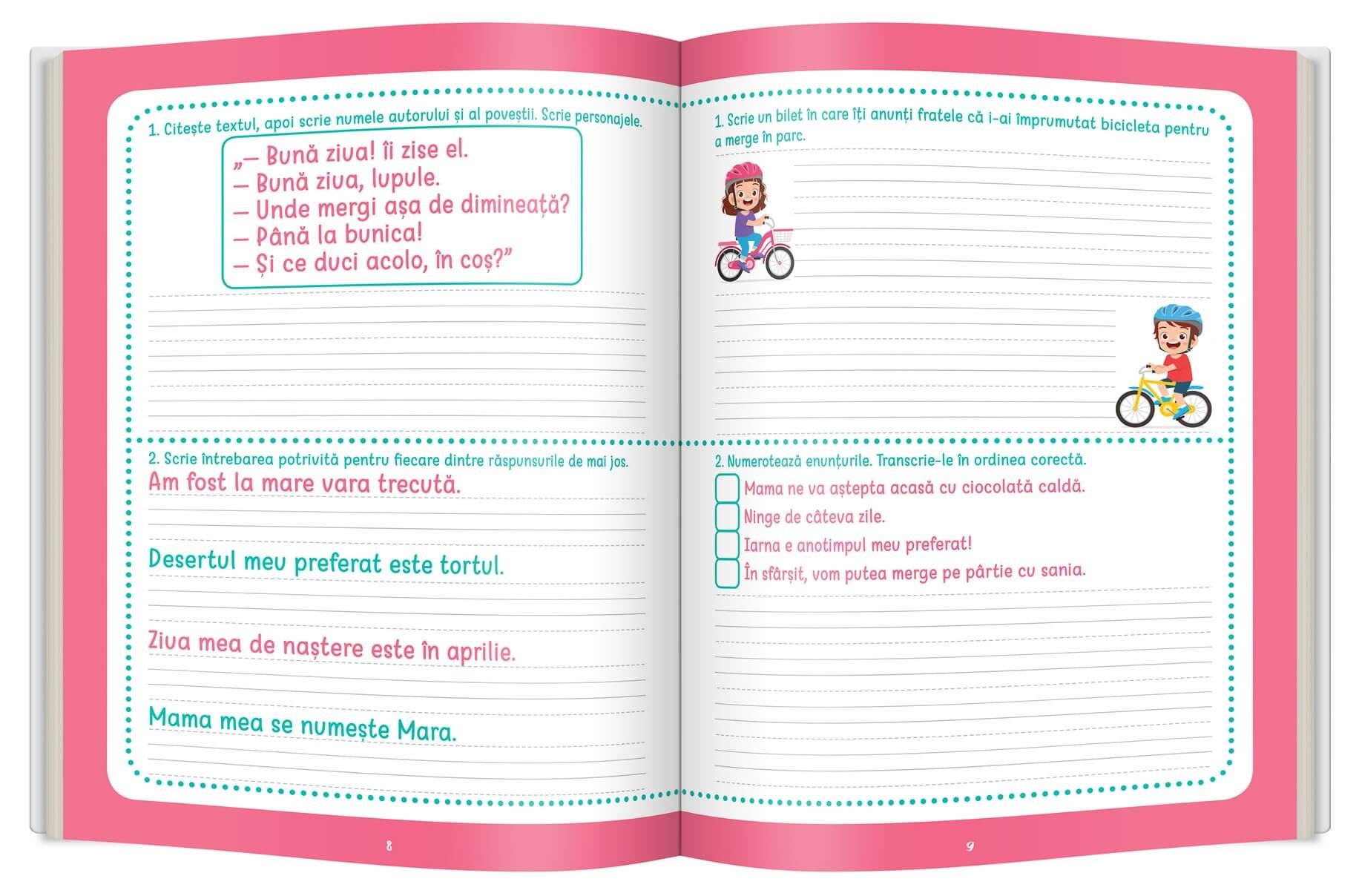 Caietul meu de vacanță • Comunicare în limba română pentru absolvenții clasei a II-a include exerciții recapitulative din materia anului școlar anterior, precum și jocuri ce antrenează competențele dobândite. Îți vei reaminti de: