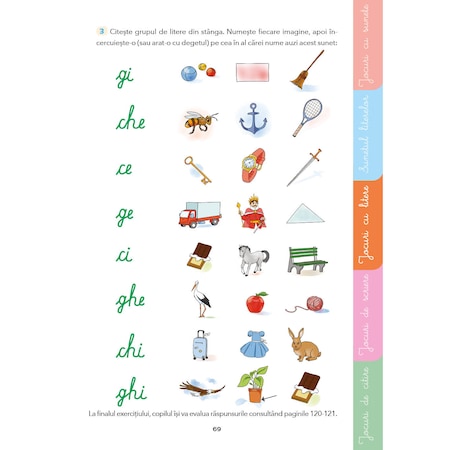 Manipularea obiectelor ii ajuta pe copii sa invete. Prin urmare, activitatile din acest caiet pot fi completate cu jetoanele din casetele Litere in relief si Invat sa citesc cu Montessori.