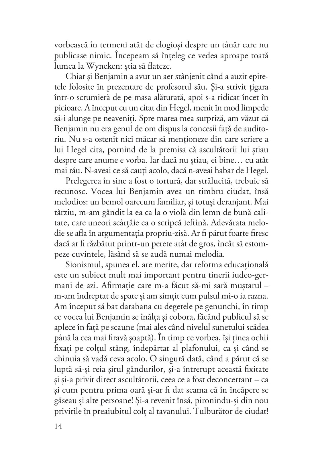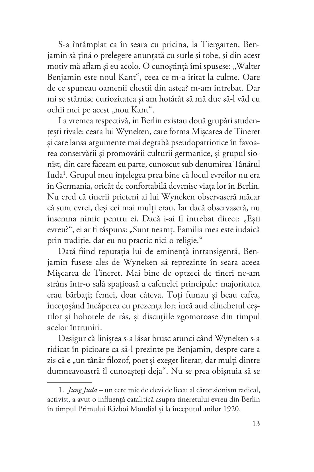 În acest roman fascinant, Jay Parini reconstituie ultimele luni din viața filozofului Walter Benjamin, care părăsise Parisul chiar înaintea invaziei naziste din 1940. Pornind de la mărturii, scrisori, jurnale și memorii ale contemporanilor – personalități ale scenei intelectuale occidentale care au supraviețuit celui de-Al Doilea Război Mondial –, Parini îi conturează lui Benjamin un portret de o profundă empatie imaginativă.