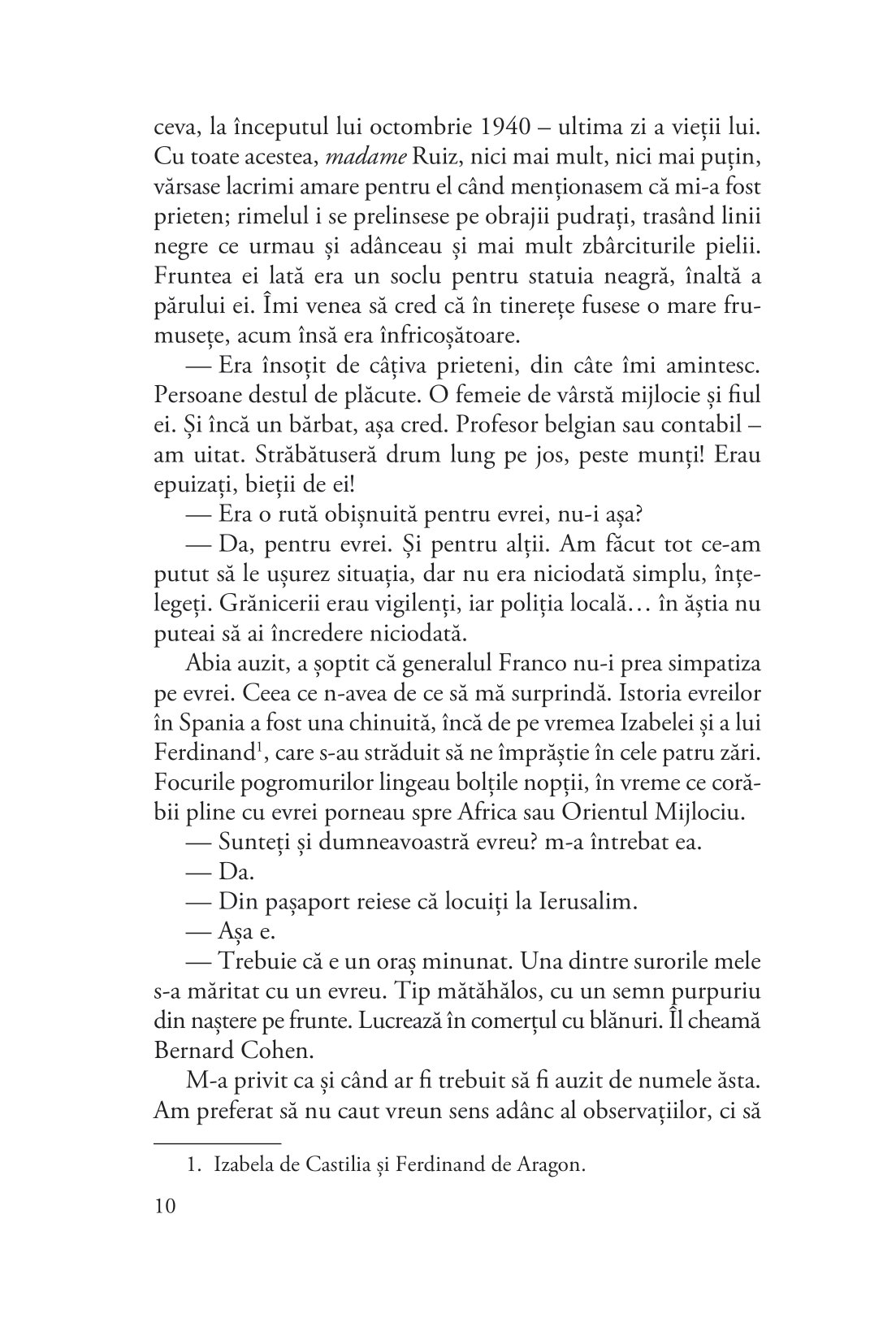 La începutul anilor 1930, când climatul intelectual și politic devenise sufocant, Walter Benjamin pleacă din Germania și se stabilește în cele din urmă la Paris, unde, timp de zece ani, se documentează, scrie, publică în diferite periodice și concepe marile sale proiecte care așteptau momentul prielnic să fie publicate. Însă turnul de fildeș în care filozoful însingurat se refugiase sperând să rămână neatins de Istorie (încercare zadarnică, după cum îl avertizau cei apropiați) se dovedește un fragil castel de cărți de joc. Eșafodajul vieții sale și rațiunea sa de a fi se năruie odată cu înaintarea germanilor în Franța, iar Benjamin se vede obligat să accepte că lumea în care s-a născut va pieri. Pornește spre sudul Franței, căutând scăpare spre Portugalia, cu speranța de a ajunge la New York, unde deja se stabilise prietenul lui, Theodor W. Adorno. Însă traversarea munților către Spania se va dovedi ultima etapă a calvarului.