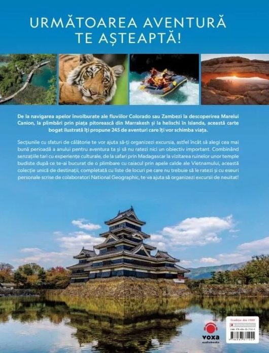 De la navigarea apelor învolburate ale fluviilor Colorado sau Zambezi la descoperirea Marelui Canion, la plimbări prin piața pitorească din Marrakesh și la helischi în Islanda, această carte bogat ilustrată îți propune 245 de aventuri care îți vor schimba viața.