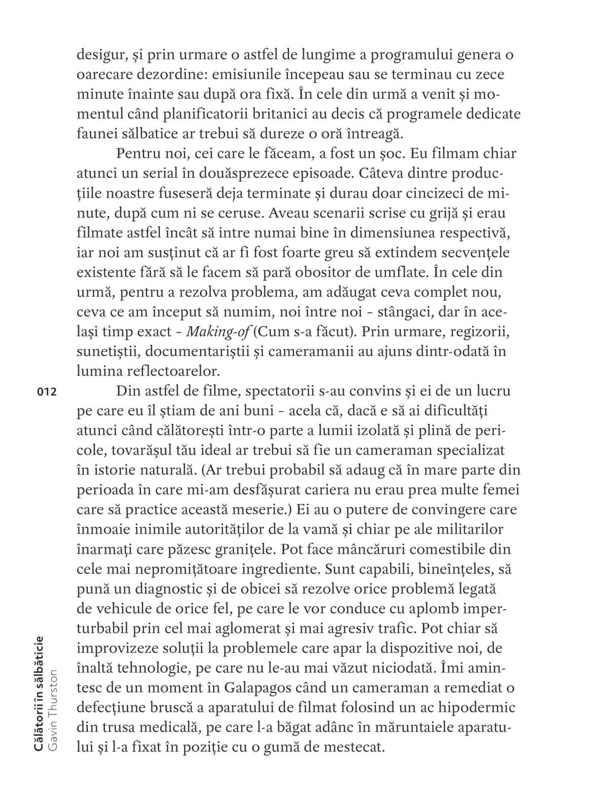 Scrisă cu modestie, fără orgolii și plină de umor, cartea de față este una dintre cele mai bune relatări ale unui cameraman pe care am citit-o reodată. -- Michael Palin, actor britanic, prezentator TV