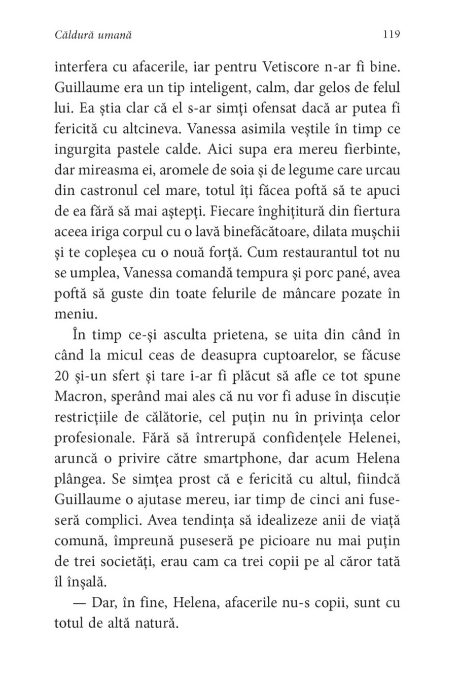 „Căldură umană îşi propune să arate că tot ce se întâmplă în lume ne afectează, chiar dacă trăim în cea mai mare izolare. E faimoasa teorie a efectului fluturelui.” (Serge Joncour)