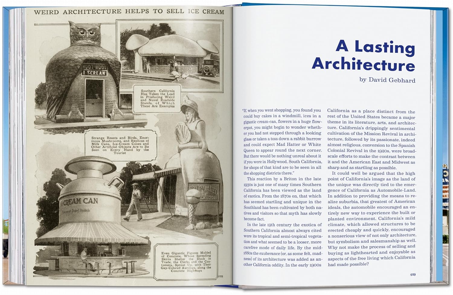 In addition, California Crazy features David Gebhard’s definitive essay, which defined this vernacular movement almost forty years ago. The California Crazy concept is expanded to include domestic architecture, eccentric signage, and the automobile as a fanciful object.
