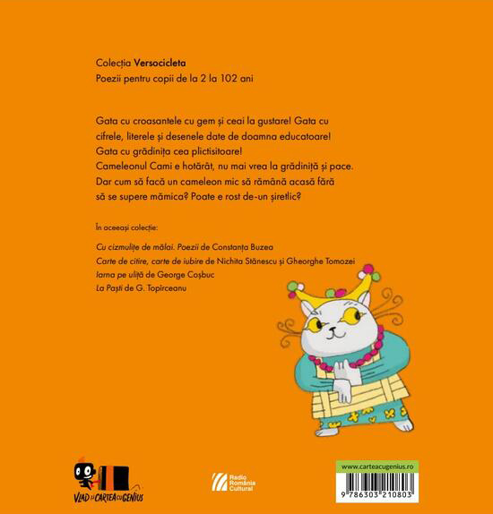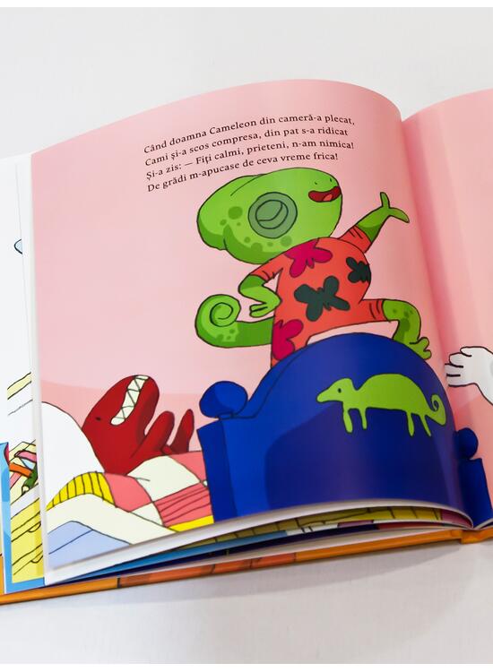 Cameleonul Cami e hotărât, nu mai vrea la grădiniță și pace. Dar cum să facă un cameleon mic să rămână acasă fără să se supere mămica? Poate e rost de-un șiretlic?