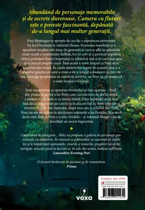 Abundând de personaje memorabile și de secrete dureroase, Camera cu fluturi este o poveste fascinantă, depănată de-a lungul mai multor generații.