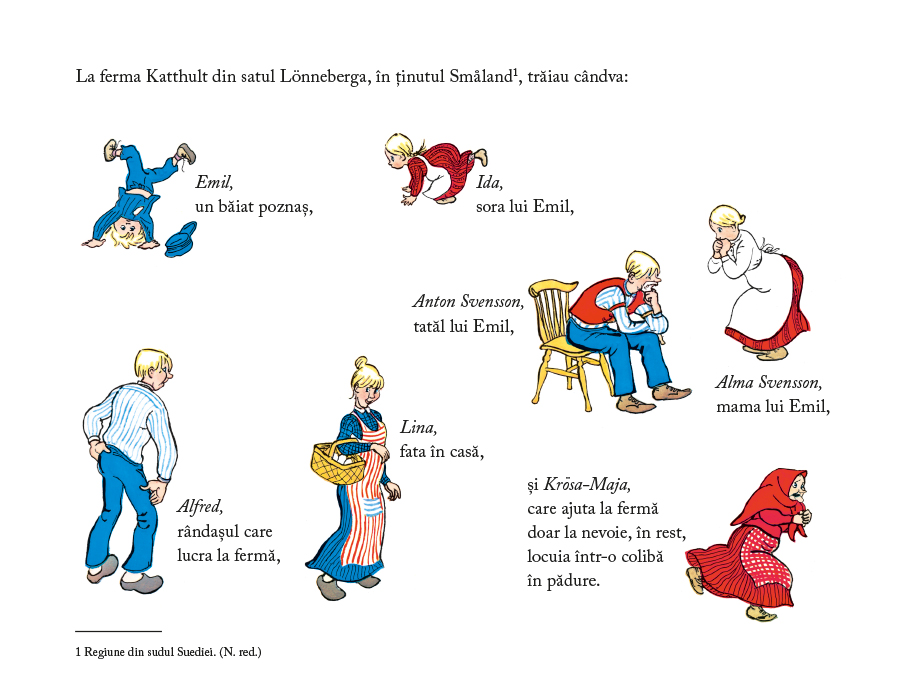 Inspirate dintr-un univers rural acum dispărut, poveștile cu Emil și Ida alcătuiesc una dintre cele mai iubite serii create de Astrid Lindgren și ne trimit cu gândul la lumea lui Tom Sawyer sau cea a lui Nică din „Amintirile“ lui Creangă — lumi calde, fericite și eterne ale copilăriei.