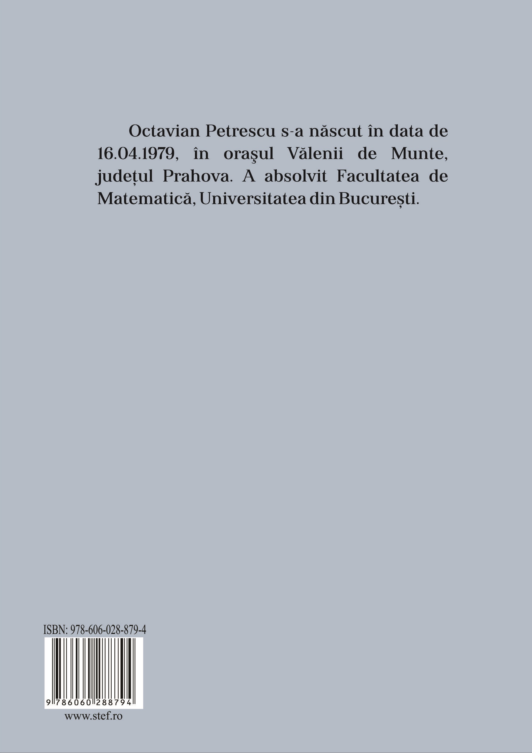 Octavian Petrescu s-a născut în data de 16.04.1979, în orașul Vălenii de Munte, județul Prahova. A absolvit Facultatea de Matematică, Universitatea din București.