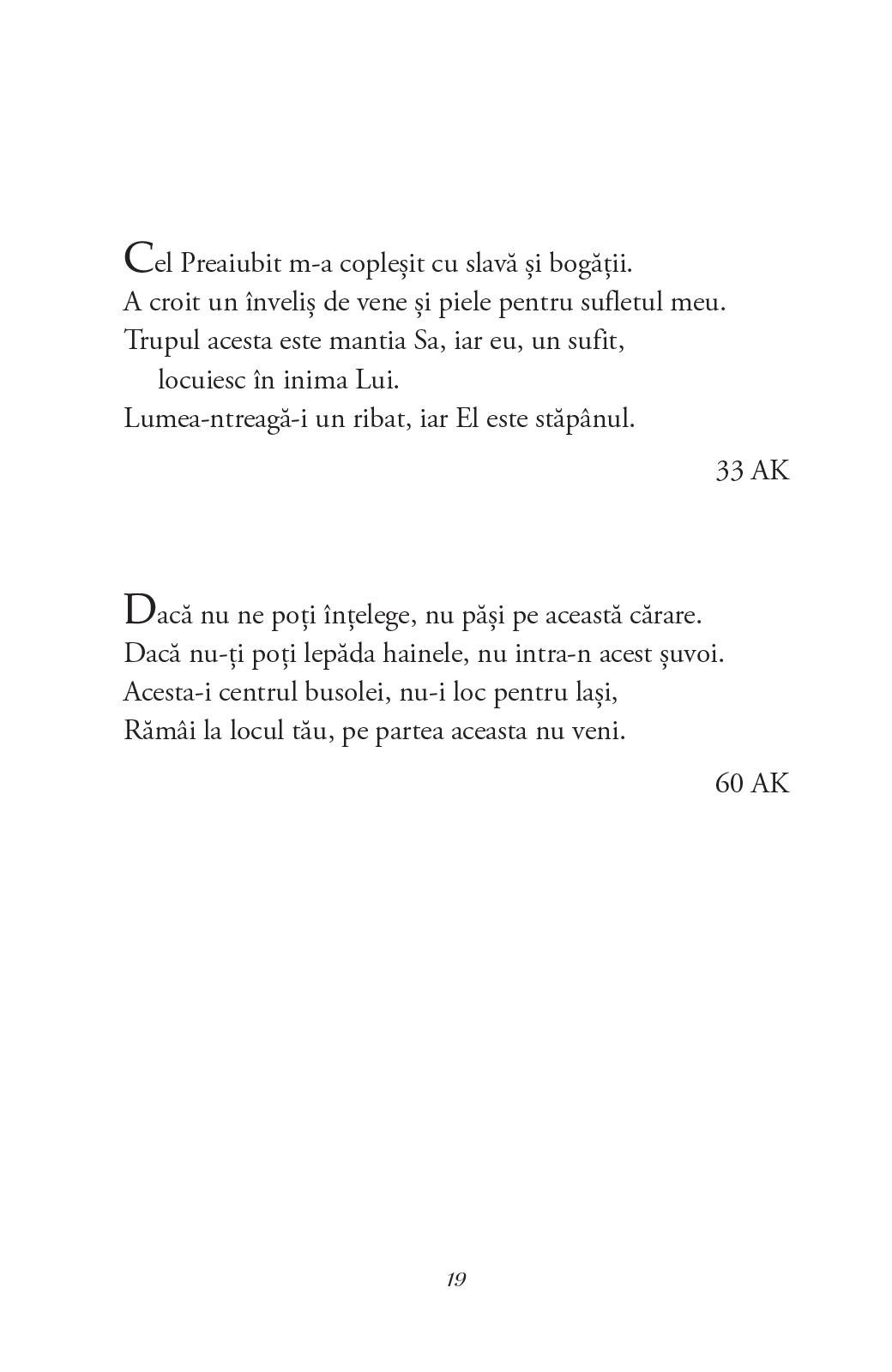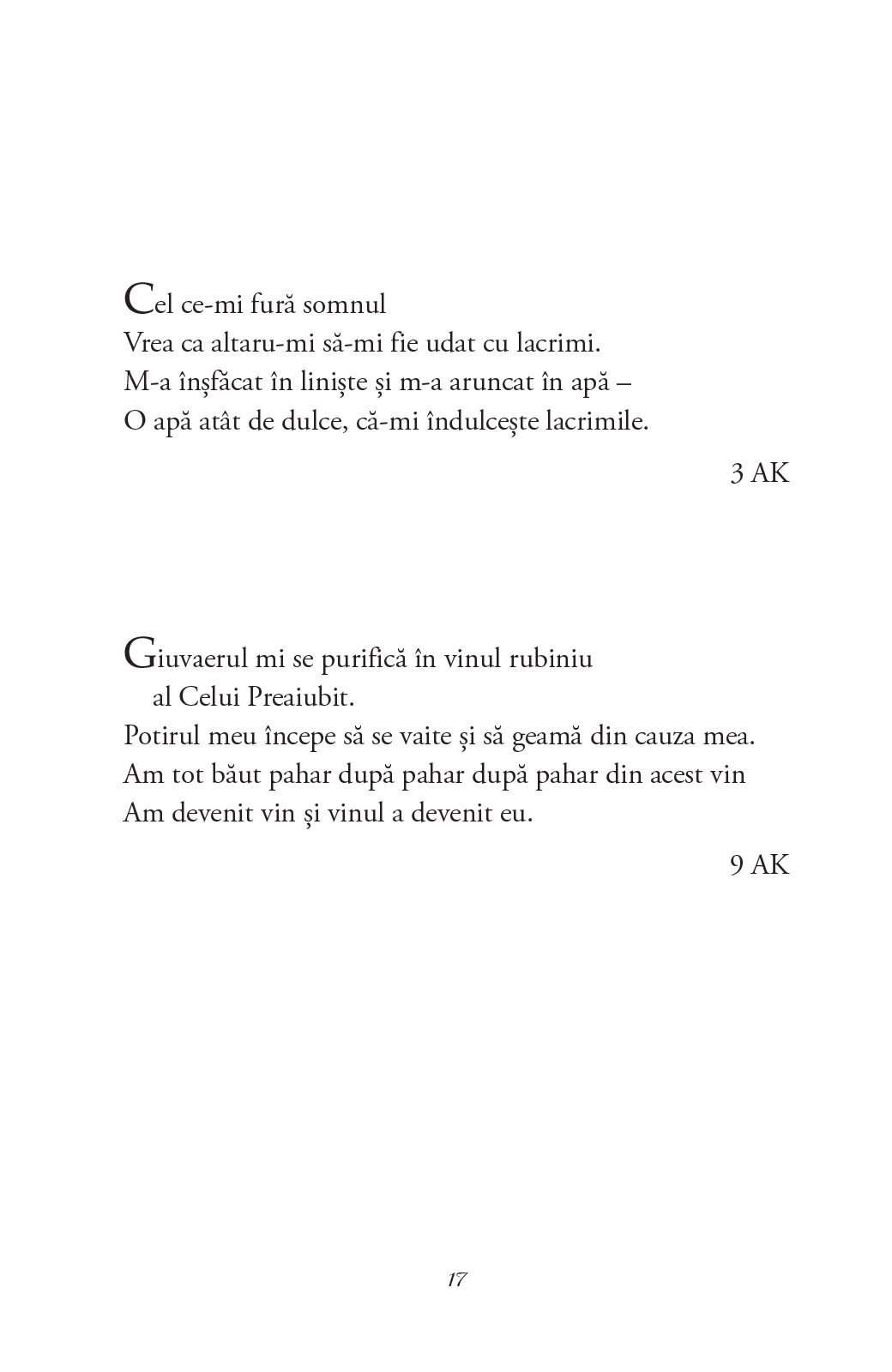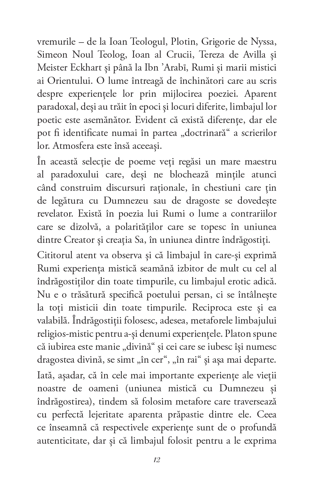 O selecție de poeme de la un mare maestru al paradoxului, în care experiența mistică se contopește cu cea a iubirii, într-o celebrare a trăirilor sufletești care au loc îndeobște în umbră, în taină și fără spectatori.