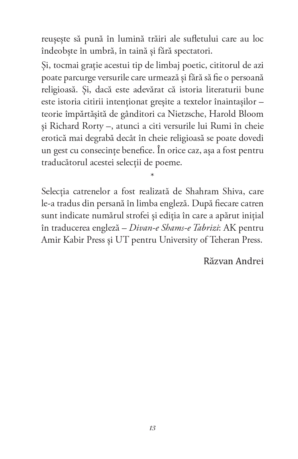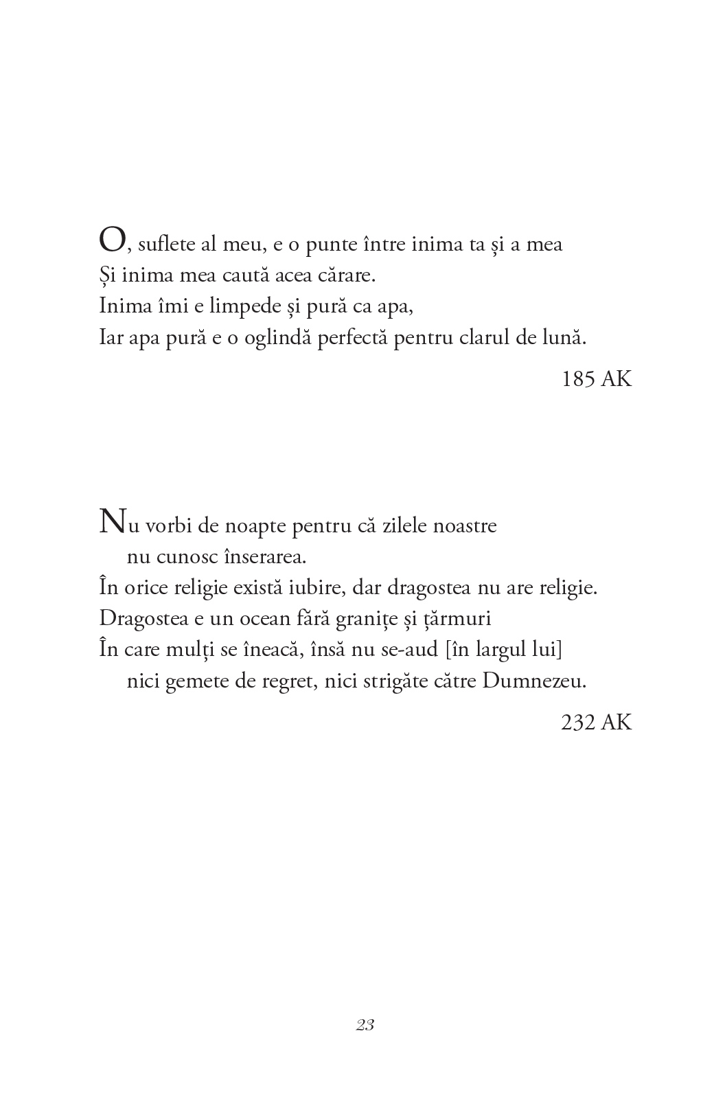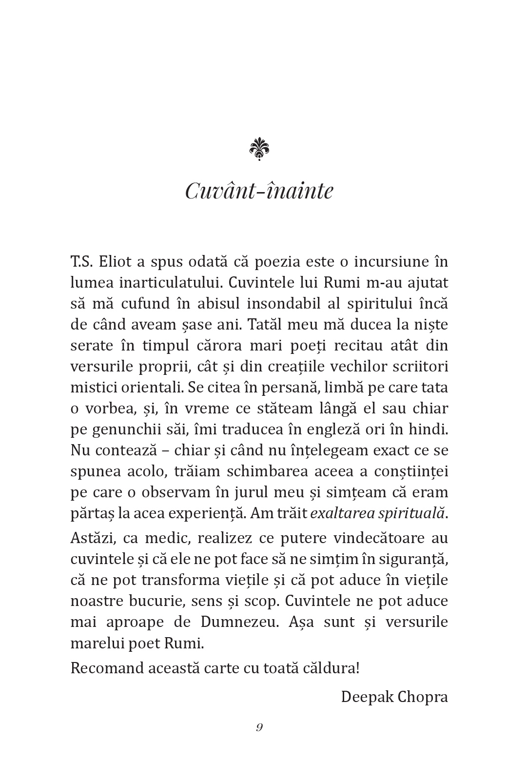O selecție de poeme de la un mare maestru al paradoxului, în care experiența mistică se contopește cu cea a iubirii, într-o celebrare a trăirilor sufletești care au loc îndeobște în umbră, în taină și fără spectatori.