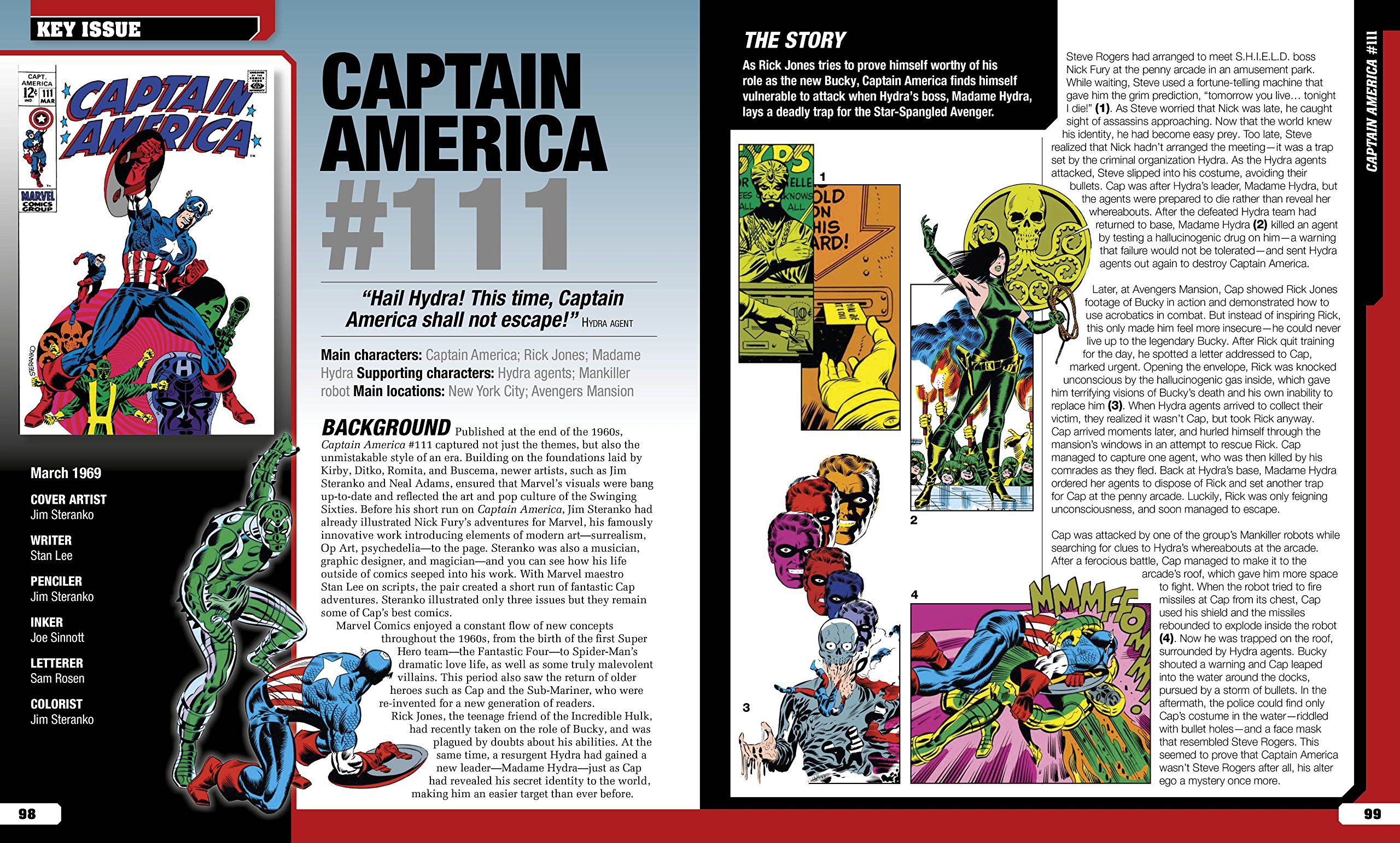 Captain America: The Ultimate Guide to the First Avenger is a comprehensive guide celebrating the exciting world of Captain America, examining iconic characters - including Red Skull, Bucky Barnes and Falcon - while showcasing key comic book issues and storylines from Captain America's 75 year history.