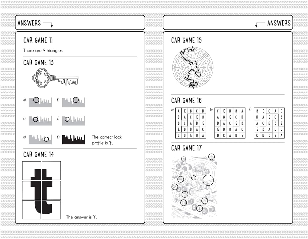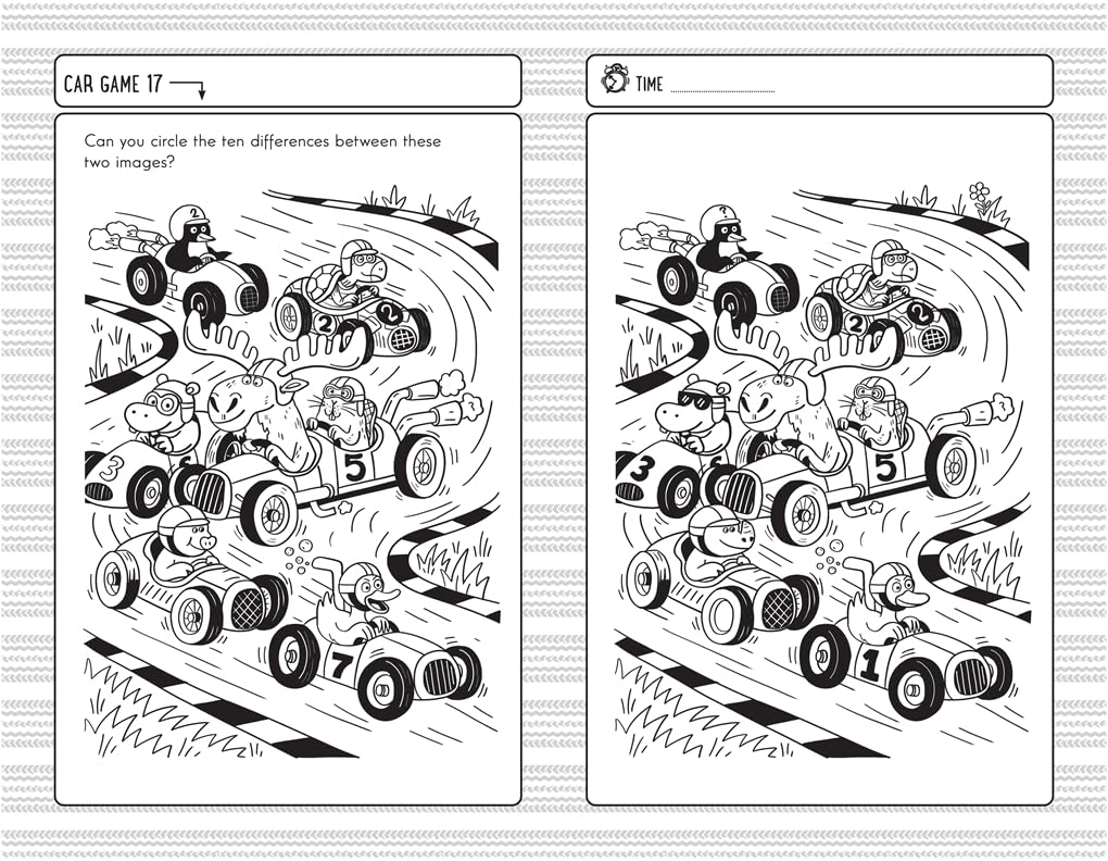 The book is full of car-themed mazes, sudokus, spot-the-differences, sequences and other fun-fuelled puzzles. Can readers spot the difference between the sports cars, guide the racing mouse through the maze and put the roadside jigsaw back together?