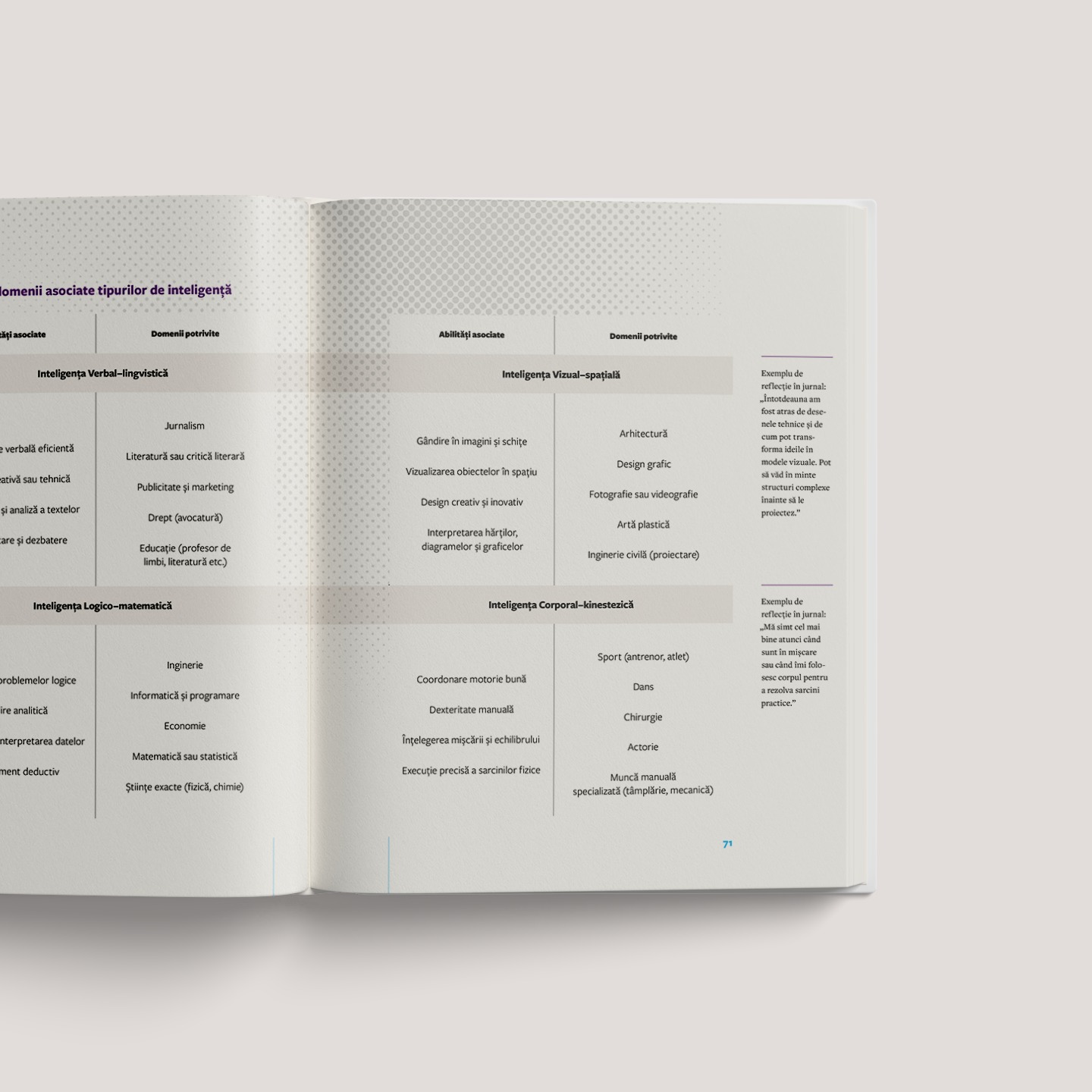 ‘Carieră cu sens’ este un produs adresat tuturor: indiferent de vârsta pe care o ai, ori de contextul profesional în care te afli. Fie că ești adolescent, adult tânăr, student sau profesezi într-un anumit domeniu de câțiva ani, povestea care va începe prin intermediul paginilor din jurnal te va ajuta să te cunoști mai bine din punct de vedere vocațional.