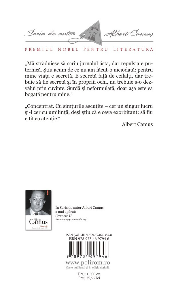 „Concentrat. Cu simţurile ascuţite – cer un singur lucru şi-l cer cu umilinţă, deşi ştiu că e ceva exorbitant: să fiu citit cu atenţie.” (Albert Camus)