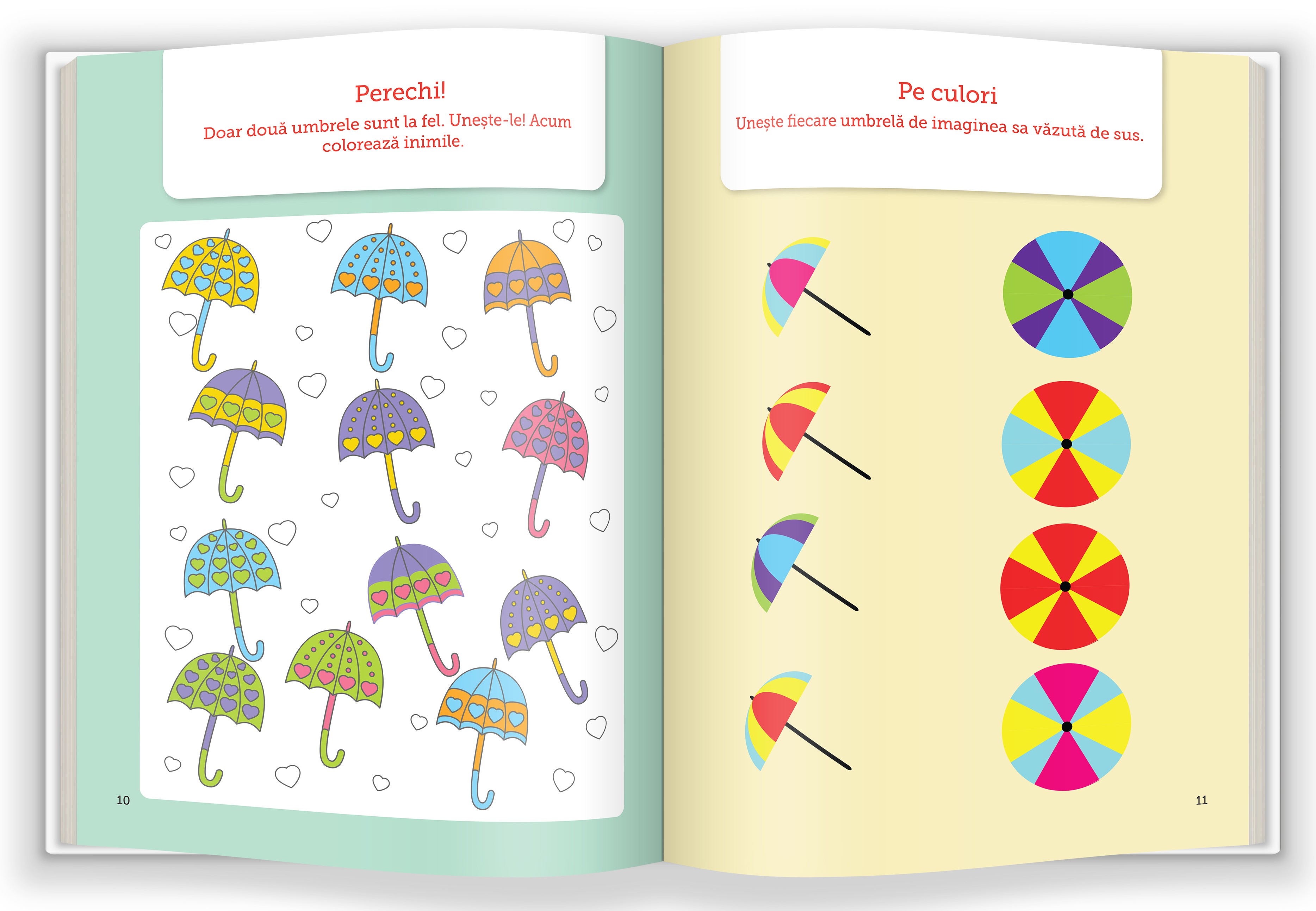 Cartea îl va ajuta pe copil să coloreze și să facă diferite asocieri între elemente, pe baza unor criterii date, antrenându-i în același timp logica. Activitățile sunt potrivite pentru copiii de 4-5 ani.