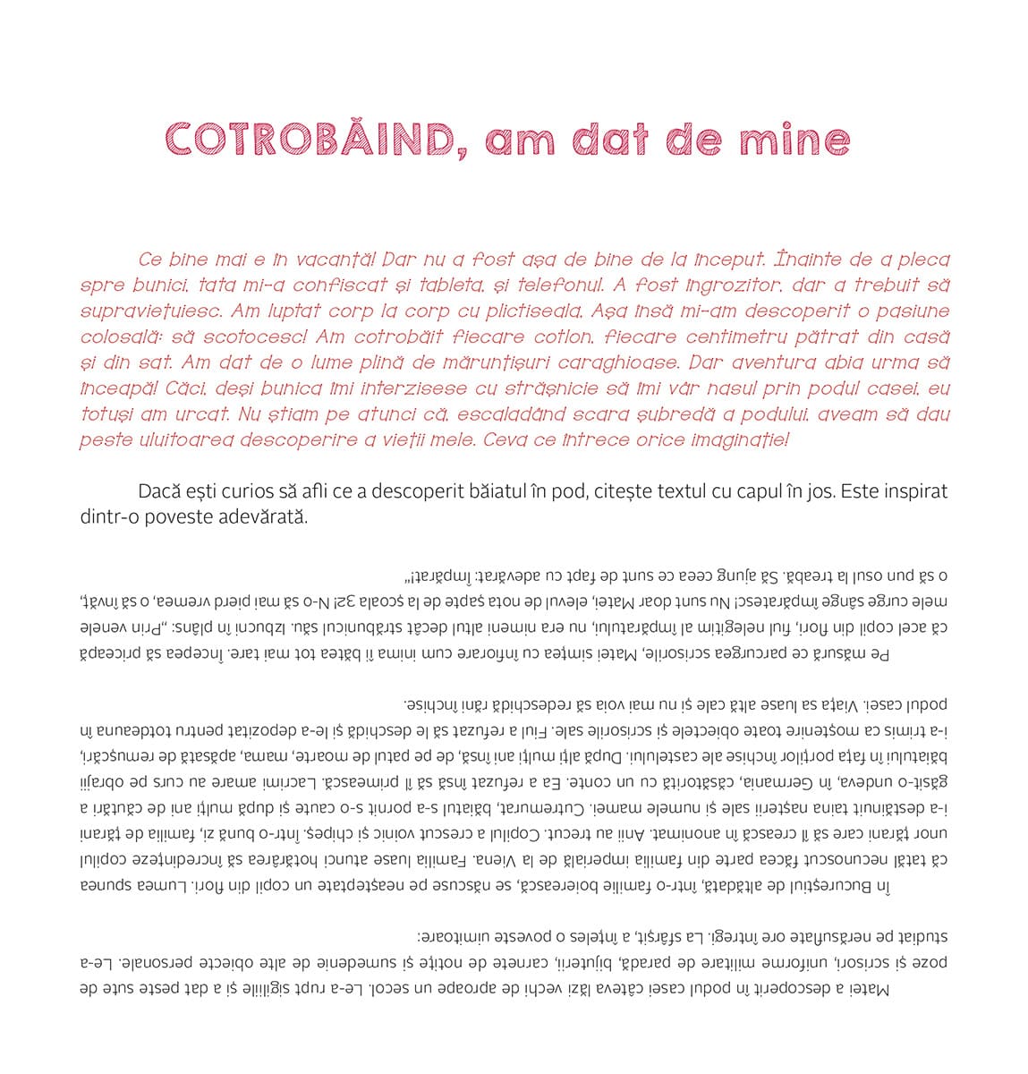 În „Cartea cuvintelor dispărute”, autorul le propune copiilor să salveze 12 cuvinte și, prin ele, o lume care nu dorim să apună pentru totdeauna: făgăduință, tâlc, snoavă, cutezător, a cotrobăi, a astâmpăra, tămăduire, menire, gogoman, nărav, a făuri, tihnă. Este un exercițiu de folosire a limbajului în mod creativ și conștient, nu în mod automat, și o carte care inspiră spre ceva mai mult decât banalitatea gândurilor de zi cu zi.