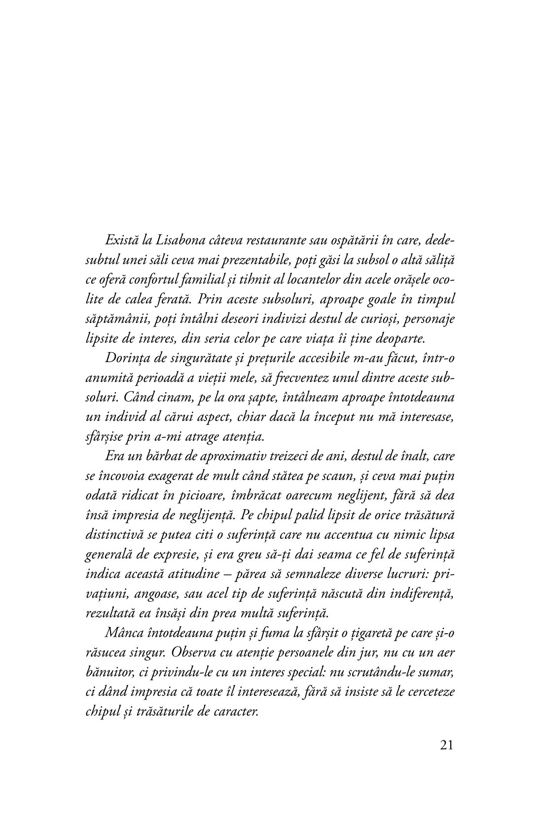 „Bernardo Soares privește lumea fremătând. El nu pretinde să descifreze realul. Se folosește de privire doar ca să-i dea emoții, căci lumea lui e făcută din emoții, iar el își propune să schimbe lumea emoțiilor. Bernardo Soares vrea să-i atribuie lumii opace care îl înconjoară emoția pe care o simte în interioritatea lui.“ — ANTONIO TABUCCHI