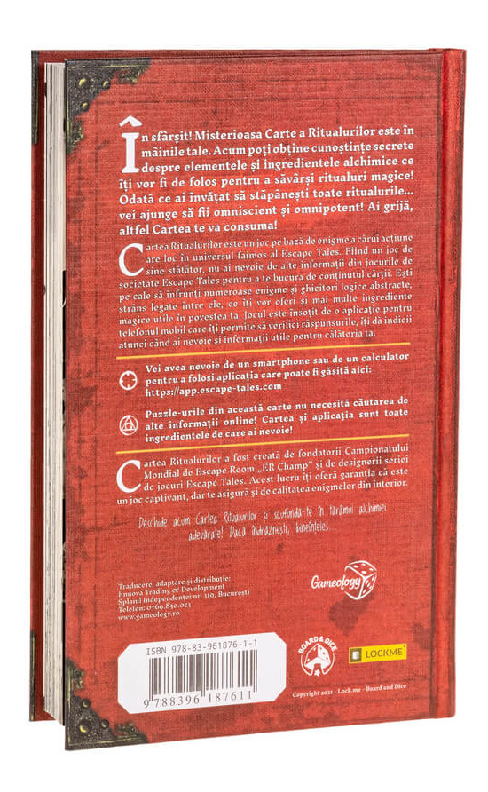 Puzzle-urile din aceasta carte nu necesita cautarea de alte informatii online! Cartea si aplicatia sunt toate ingredientele de care ai nevoie! Cartea Ritualurilor a fost creata de fondatorii Campionatului Mondial de Escape Room „ER Champ” si de designerii seriei de jocuri Escape Tales.