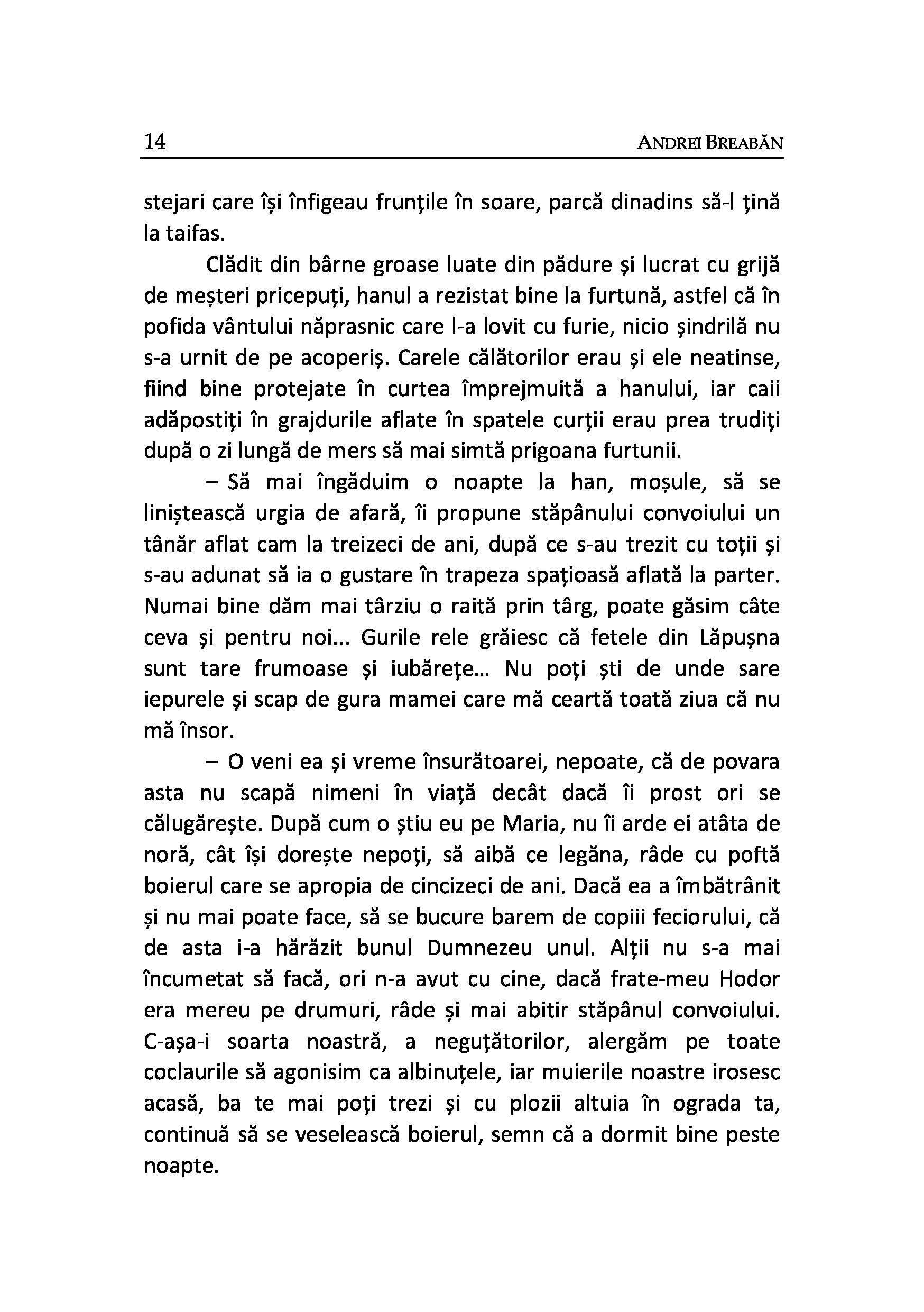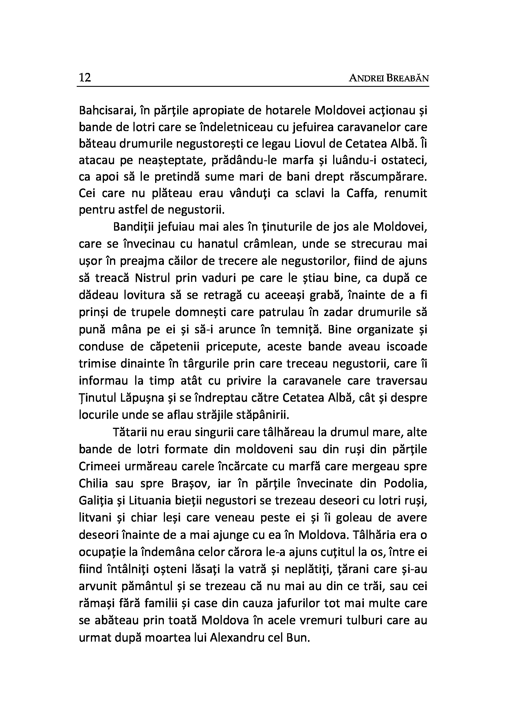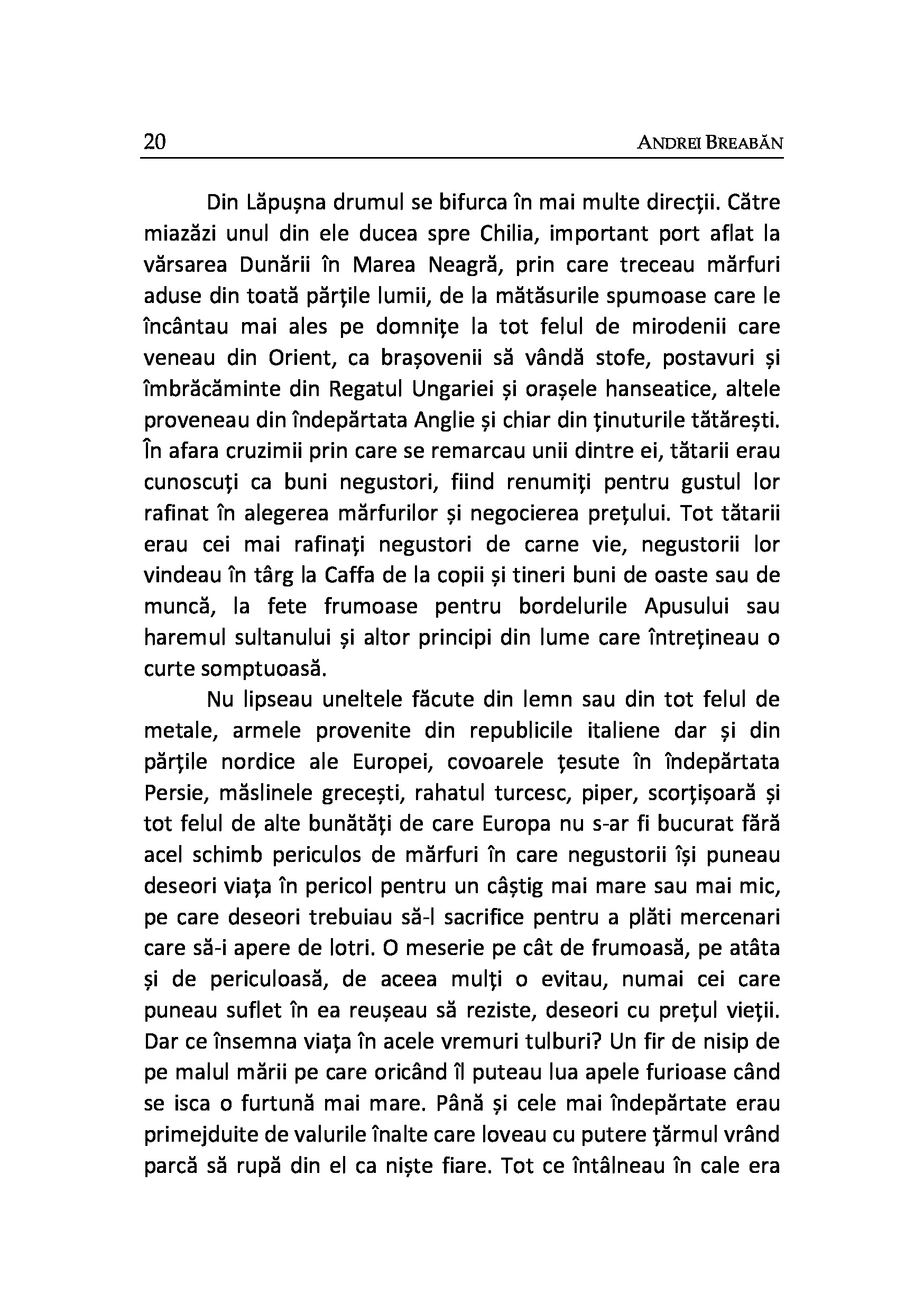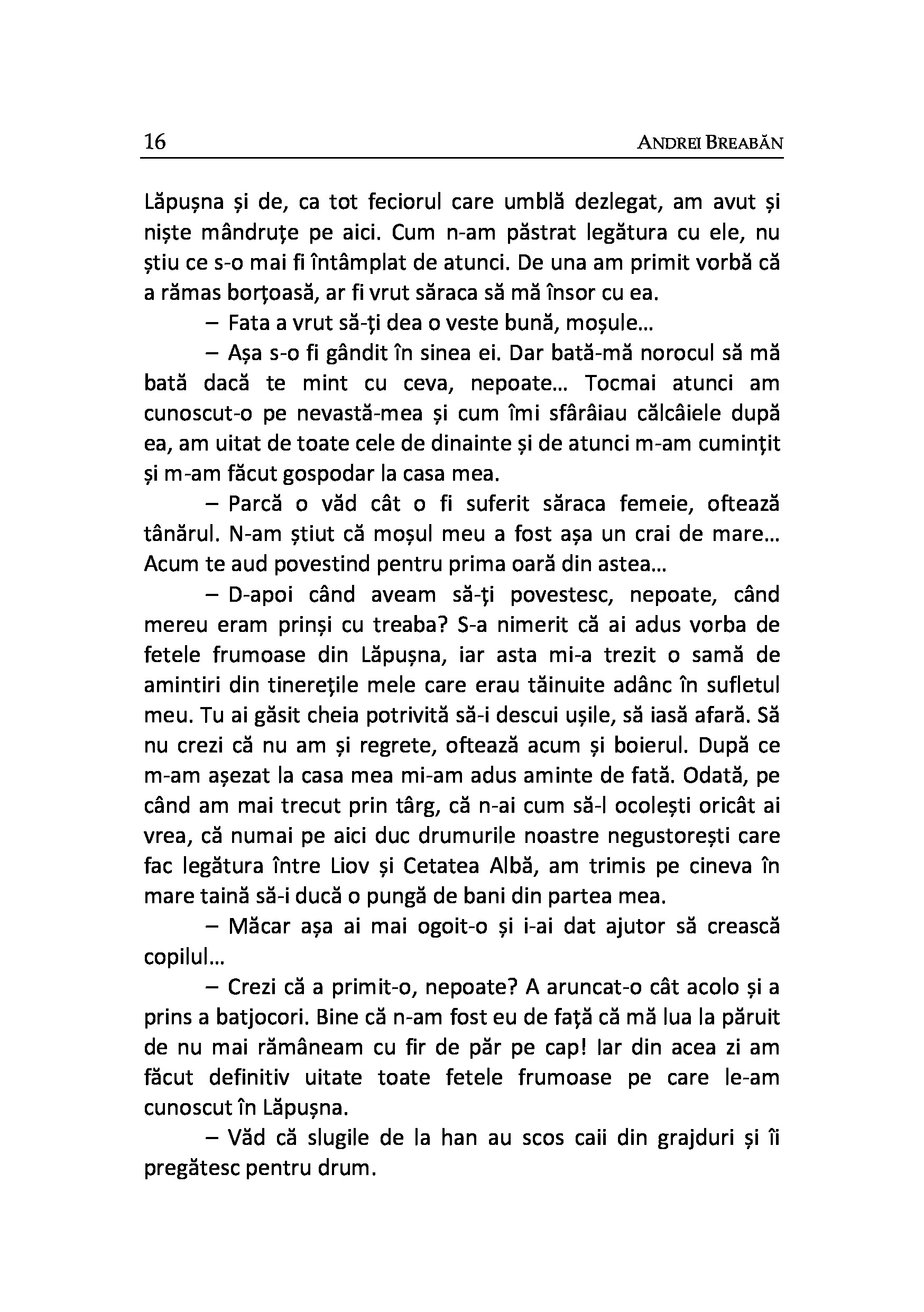 Dincolo de firul narativ care deapana biografia lui Stefan cel Mare, prozatorul are un remarcabil talent in reconstituirea epocii, a Moldovei, in tot cuprinsul sau de atunci, cu Cetatea Alba, Chilia, Castelul Lerici de pe Nistru; Targul Vasluiului, Targul Baia, Suceava, Lapusna, cu datinile pastrate, iata, pana azi, cum sunt obiceiurile de nunta ori parastasul de la Reuseni; iata Castelul de pe Nistru: Castelul Lerici, cu turnurile sale maiestuoase, se oglindea mandru in apele Nistrului, care formau ceva mai la vale un liman larg pregatindu-se sa se verse in mare. Apele jucause ale raului se jucau zburdalnic cu valurile inspumate, care veneau dinspre mare lasand la plecare ceva din sarea care le prisosea, ca semn al bunavointei cu care le primea spre a se uni cu ele spre eternitate. Ridicat chiar pe malul Nistrului, pentru a fi mai usor de aparat, apele leganate de vant se loveau fara tihna de zidurile de piatra ale Castelului pe care le spalau de praful venit dinspre uscat, adus peste ele de acelasi vant jucaus, astfel ca zilnic se luau la intrecere care sa lase mai multe urme pe ele. Moldova lui Andrei Breaban este un spatiu identitar al neamului si, deopotriva, spatiul fiintial al prozatorului; depasind, poate, prea numeroasele rezumate dintr-o bibliografie care copleseste, Andrei Breaban evoca, in neascunsa emotie, un spatiu si o istorie ale eroilor. - Ioan Holban