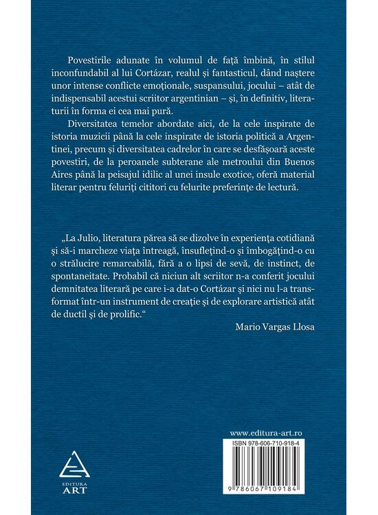 Povestirile adunate în volumul de față îmbină, în stilul inconfundabil al lui Cortázar, realul și fantasticul, dând naștere unor intense conflicte emoționale, suspansului, jocului - atât de indispensabil acestui scriitor argentinian - și, în definitiv, literaturii în forma ei cea mai pură.