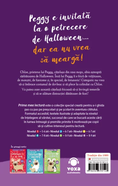 Chloe, prietena lui Peggy, cățelușa din rasa mops, abia așteaptă sărbătoarea de Halloween. Însă lui Peggy îi e frică de vrăjitoare, de monștri, de fantome și, în special, de întuneric! Categoric nu vrea să-și îmbrace costumul de dovleac și să plece la colindat cu Chloe. Va putea oare această cățelușă fricoasă să-și învingă temerile și să se alăture distracției dătătoare de fiori?
