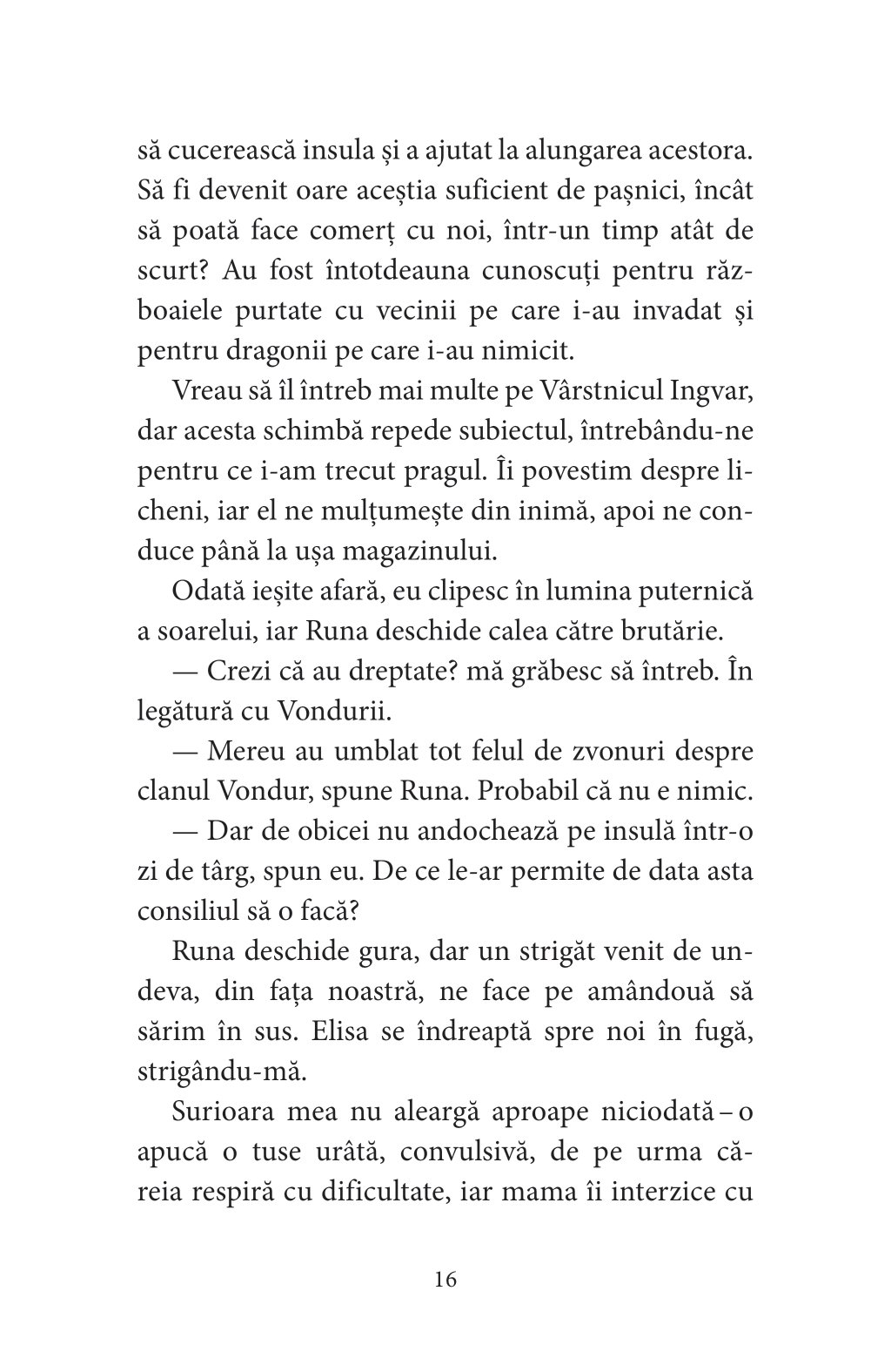„Un roman fantasy cu un ritm alert despre importanța perseverenței, mai ales când este vorba de a schimba obiceiurile (mai degrabă învechite) ale societății. Un volum deopotrivă pasionat și amuzant!”