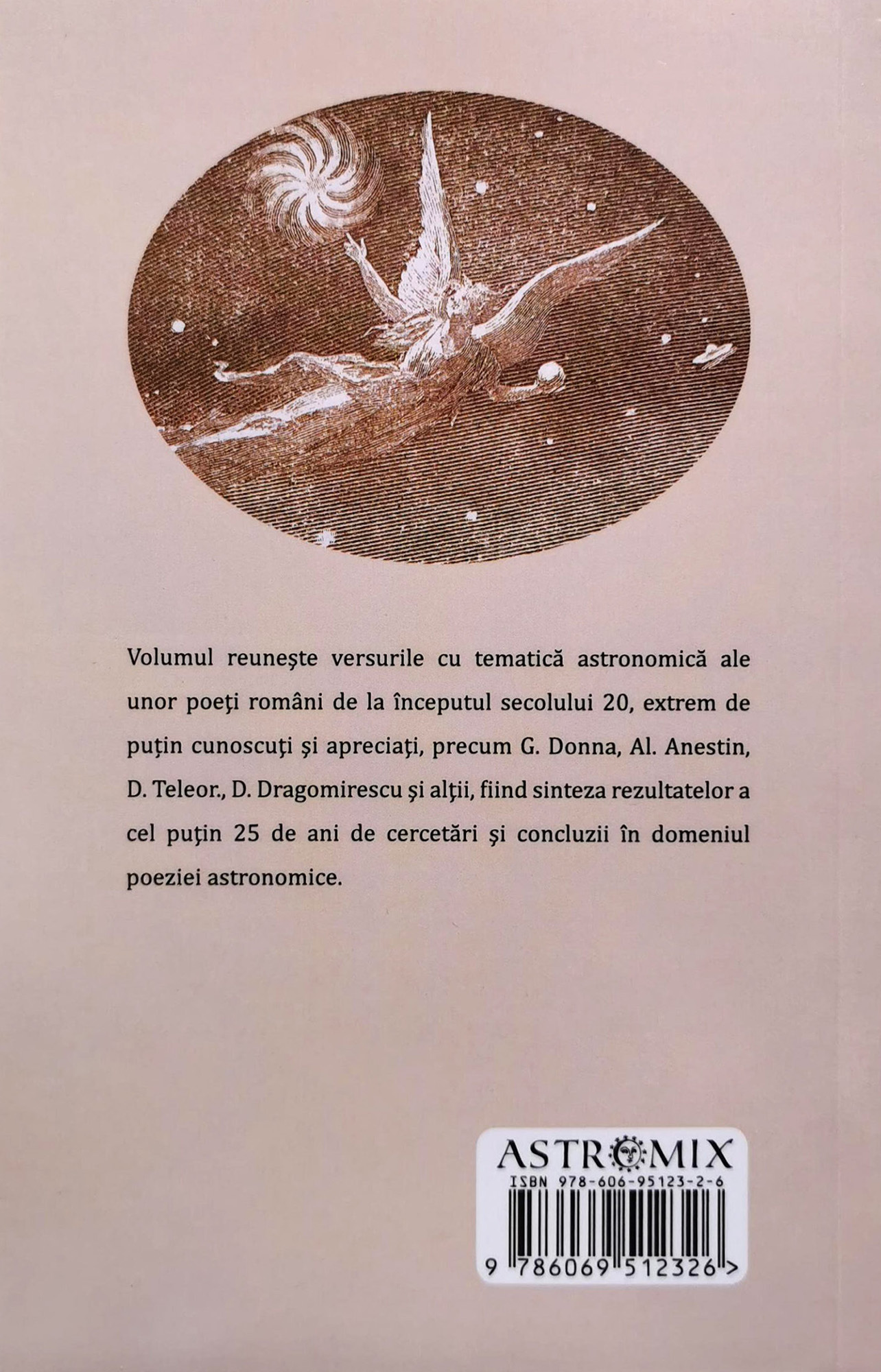 Volumul reuneşte versurile cu tematică astronomică ale unor poeţi români de la începutul secolului 20, extrem de puțin cunoscuţi şi apreciaţi, precum G. Donna, Al. Anestin, D. Teleor., D. Dragomirescu şi alţii, fiind sinteza rezultatelor a cel puţin 25 de ani de cercetări şi concluzii în domeniul poeziei astronomice.