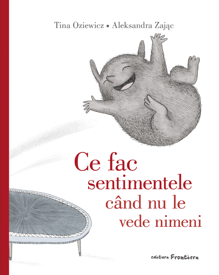 Ce fac sentimentele când nu le vede nimeni? Să privim această galerie de personaje simpatice (prefăcându-ne că nu le vedem). Iată ce vedem! Curiozitatea se cațără întotdeauna cât de sus poate. Bucuria țopăie pe trambulină. Recunoștința tricotează un pulover (care încălzește). Nesiguranța umblă cu un lanț gros de chei în mână, pentru toate cuștile pe care le construiește. Frica se ascunde într-o cutie ruginită de sub un dulap. Dragostea este electrician și iluminează toată încăperea…