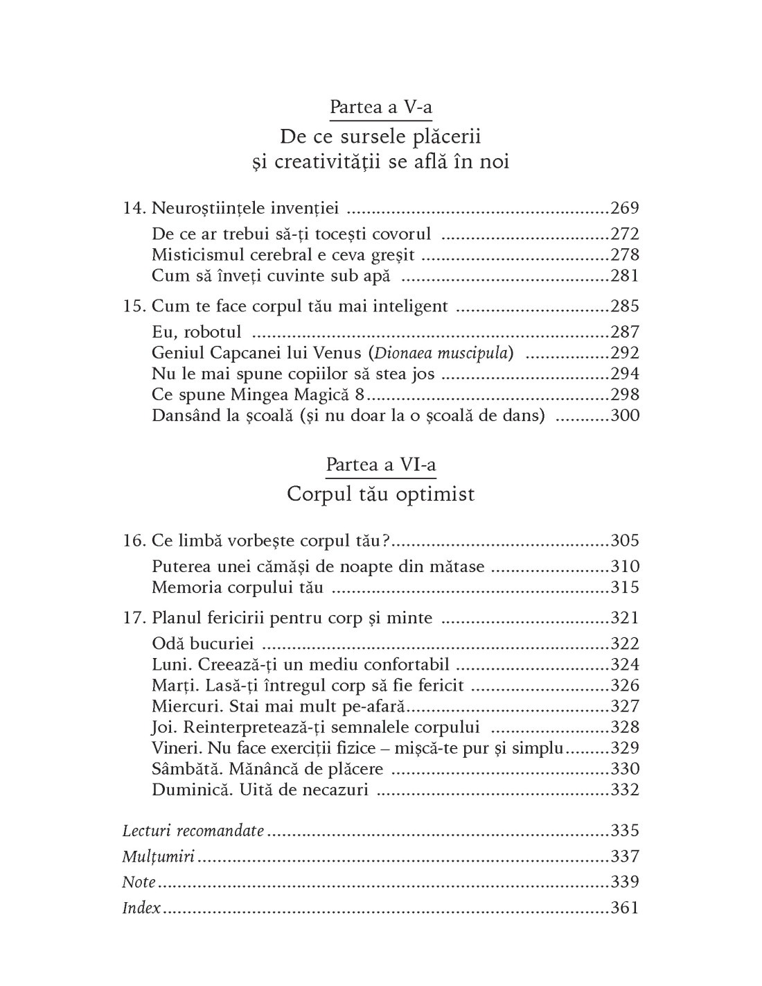 Ai observat că, atunci când îți îndrepți spatele, ai mai multă încredere în tine? Că, dacă te forțezi să zâmbești, starea de spirit chiar ți se îmbunătățește? Sau că, pe o alee întunecată, mai întâi inima începe să-ți bată cu putere și abia apoi creierul primește mesajul că îți este frică? Ne-am obișnuit să credem că mintea conduce corpul, dar cele mai recente cercetări din neurologie, psihologie și biologie arată că lucrurile nu funcționează mereu așa: de multe ori, corpul reacționează primul, apoi creierul interpretează semnalele transmise de acesta.