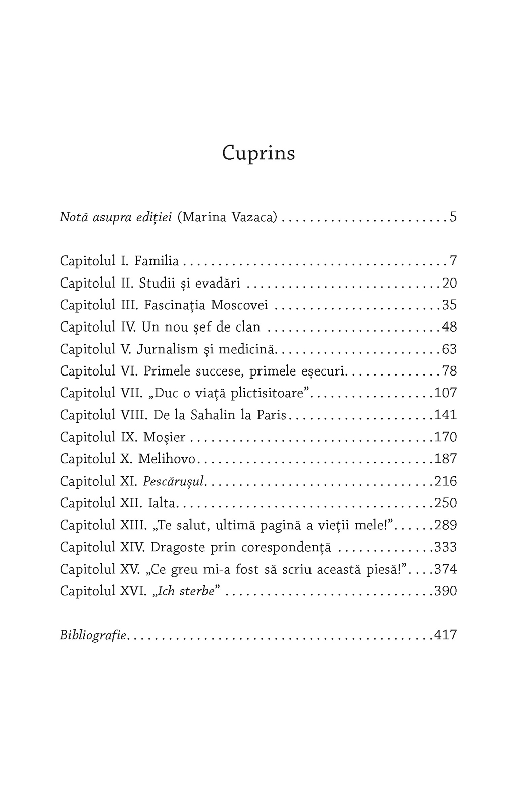 După biografiile dedicate celor mai importanți scriitori ruși din secolul al XIX-lea – Dostoievski, Pușkin, Lermontov, Tolstoi, Gogol –, pentru a completa această galerie de portrete, în 1984, Henri Troyat s-a angajat să spună povestea fascinantă a lui Anton Pavlovici Cehov. Povestea unei vieți scurte – A.P. Cehov a murit la doar patruzeci și patru de ani (1860-1904) –, dar trăită cu intensitate și bogată din perspectiva frămîntărilor interioare ale personajului. O călătorie prin misterele unei ființe surprinzătoare, ce-și împarte timpul între medicină, domeniu căruia i se dedică cu devotament, și literatură, unde se distinge ca artist independent, ostil oricărei poziții politice, filozofice, religioase, dornic mai presus de toate să scoată în evidență viața, fără a încerca să demonstreze nimic.