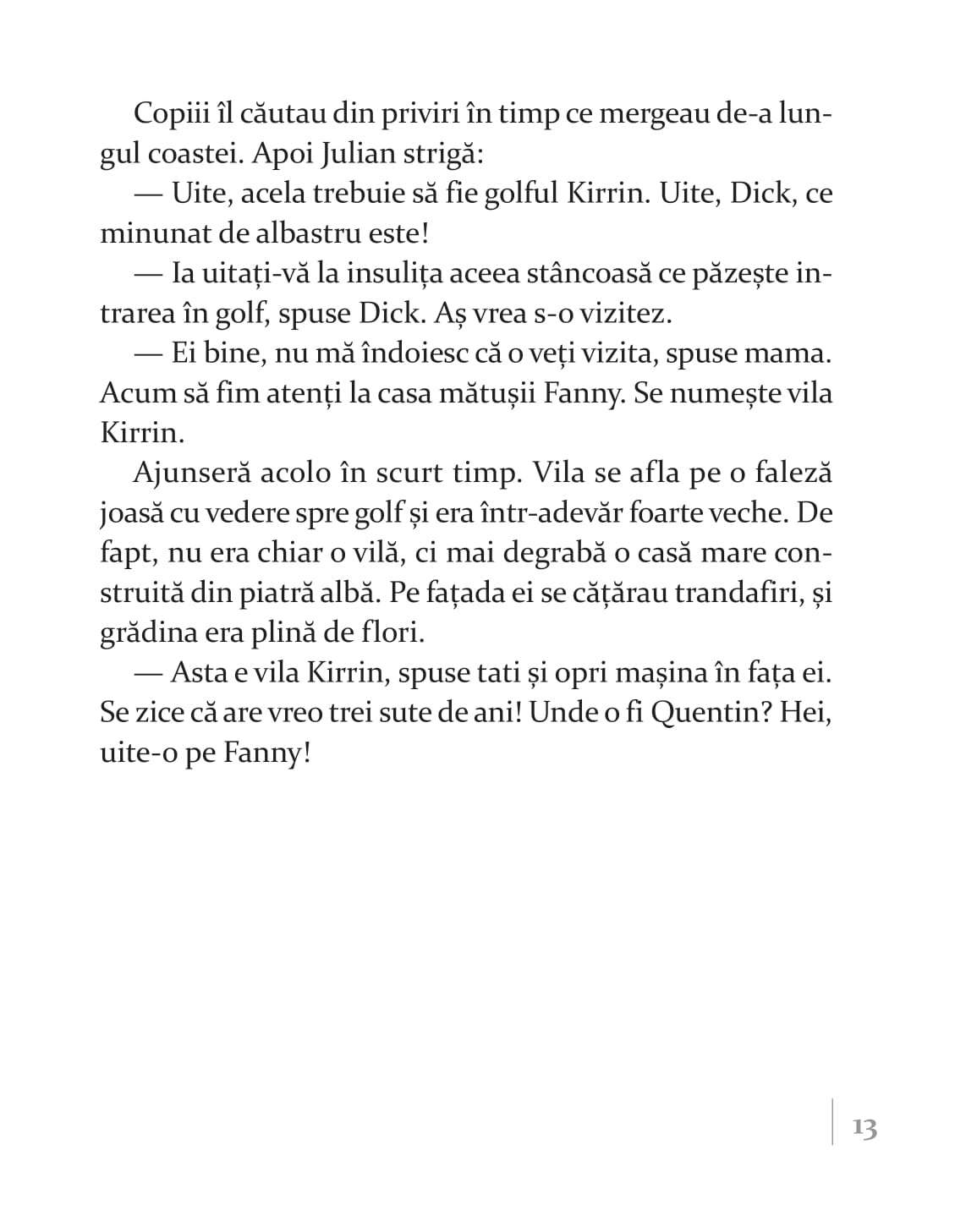 „Înainte să vedem care-i treaba cu insula comorii, trebuie să vă zic că Enid Blyton este una dintre cele mai prolifice și apreciate scriitoare de literatură pentru copii. Născută în Marea Britanie, a scris mai mult de 600 de cărți, care s-au vândut în peste 500 de milioane de exemplare peste tot în lume. Exact. Ați citit bine. 600 de cărți, 500 de milioane de exemplare. Asta chiar spune ceva despre priceperea ei. Unde mai pui că și-a plasat numeroase dintre povești chiar în locurile în care a trăit, astfel că naturalețea cu care construiește lumi și personaje este asigurată”.