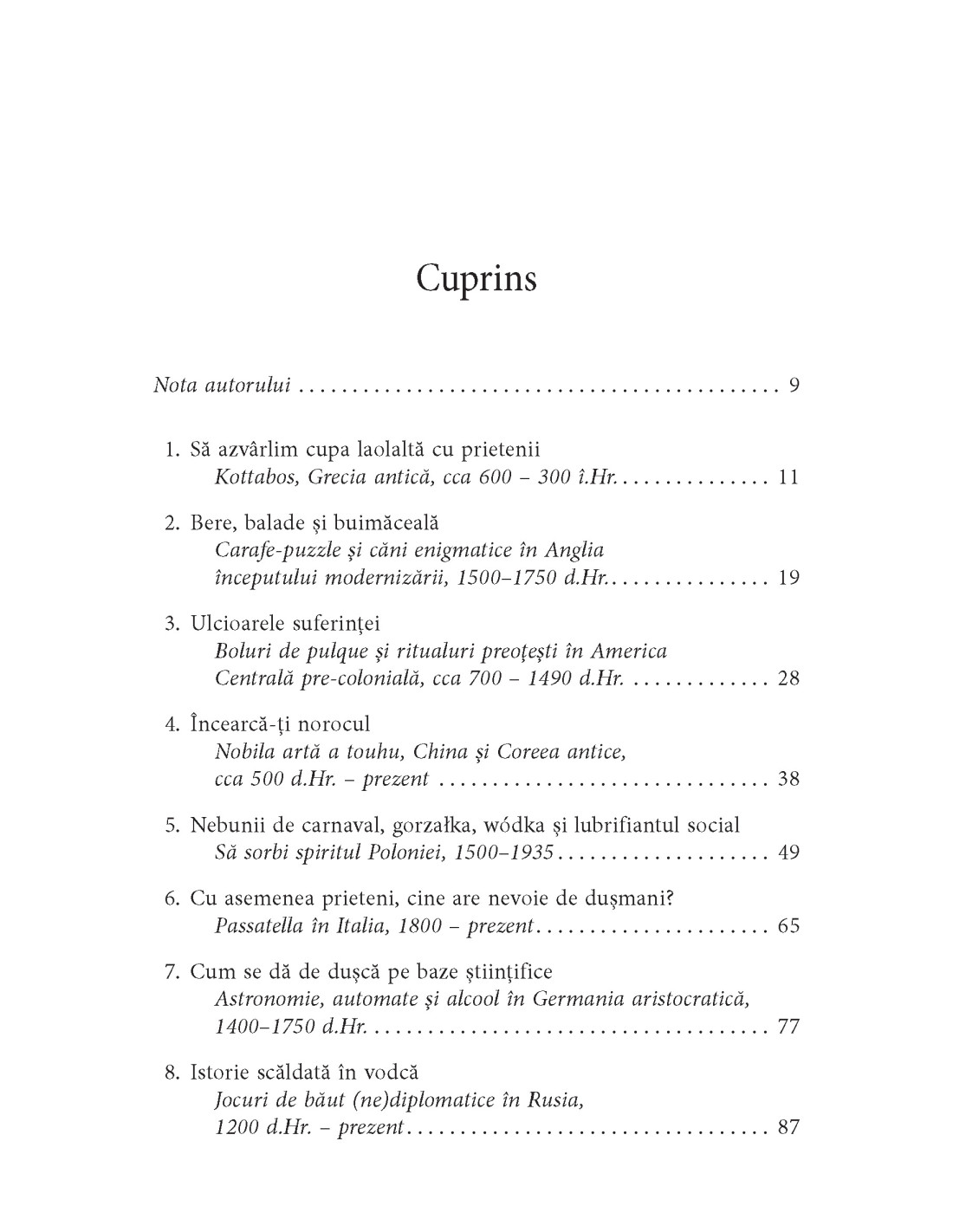 Nu doar că băutura și bețiile au constituit o constantă a omenirii încă de la începuturile istoriei, în Egiptul ori Sumerul de acum mai bine de 5.000 de ani, ci la fel de vechi sunt și tot soiul de întreceri ori jocuri mai mult sau mai puțin elaborate la care s-au dedat chefliii, născocite din plăcere, din amuzament, ca parte a unor ritualuri, pentru a impresiona sau chiar pentru a pedepsi.