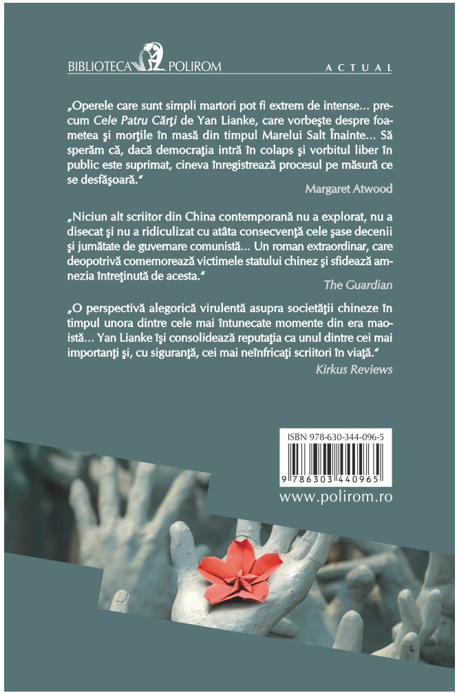 „O perspectivă alegorică virulentă asupra societăţii chineze în timpul unora dintre cele mai întunecate momente din era maoistă… Yan Lianke îşi consolidează reputaţia ca unul dintre cei mai importanţi şi, cu siguranţă, cei mai neînfricaţi scriitori în viaţă.” (Kirkus Reviews)