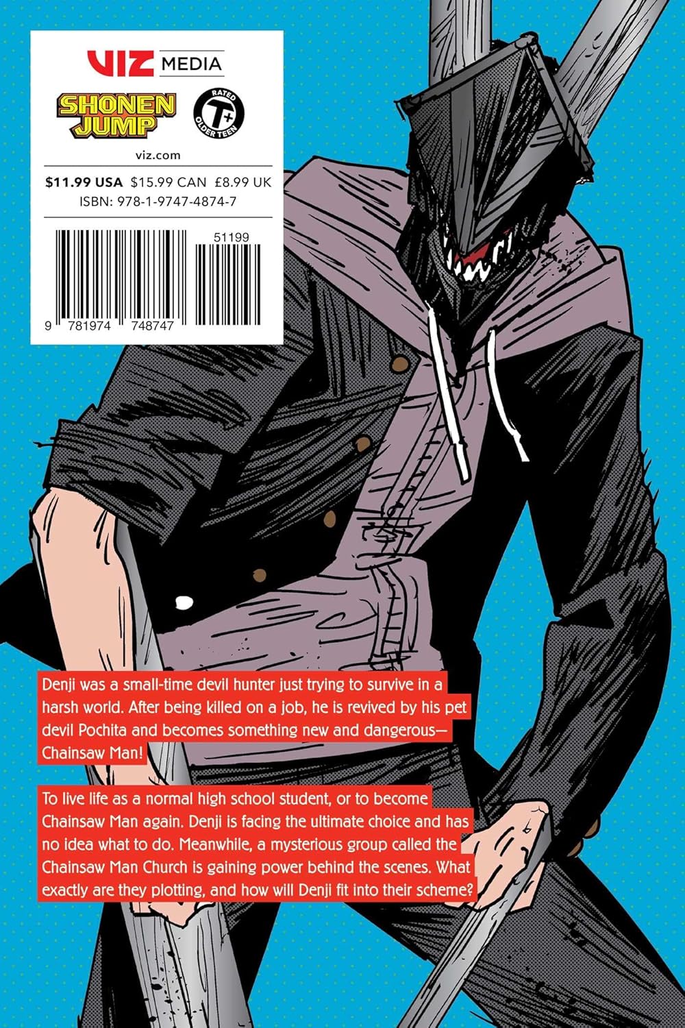 To live life as a normal high school student, or to become Chainsaw Man again. Denji is facing the ultimate choice and has no idea what to do. Meanwhile, a mysterious group called the Chainsaw Man Church is gaining power behind the scenes. What exactly are they plotting, and how will Denji fit into their scheme?