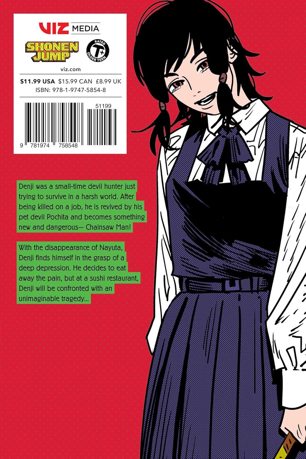 With the disappearance of Nayuta, Denji finds himself in the grasp of a deep depression. He decides to eat away the pain, but at a sushi restaurant, Denji will be confronted with an unimaginable tragedy…