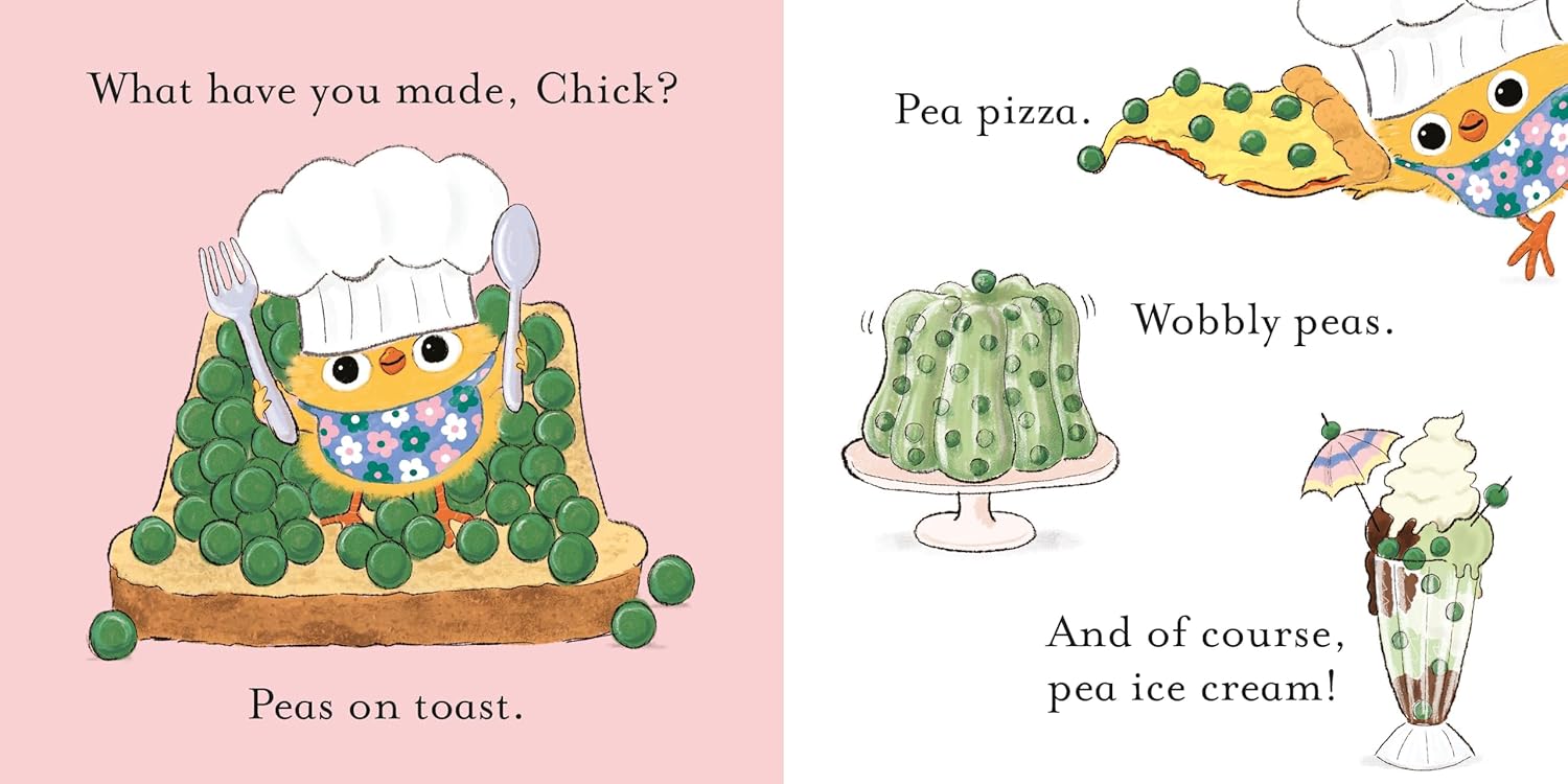 Chick LOVES peas and he’s getting ready for a pea party. But perhaps not everyone likes pea pizza or peas on toast . . . and why stick with green when there’s a whole rainbow of good food to enjoy? Roll on red, hello yellow and hooray for blue! Now come on in and wash your hands, it looks like this party is ready to start! Perfect for even the most stubborn eaters and their parents.