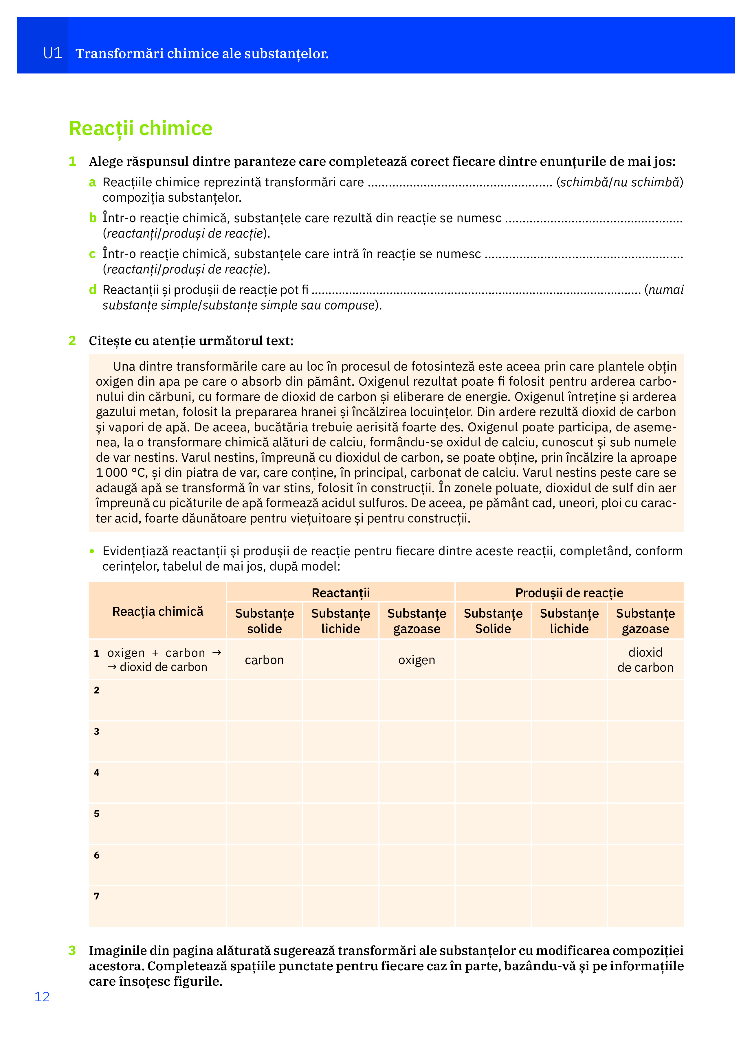 Chimie clasa a VIII-a, Caietul elevului