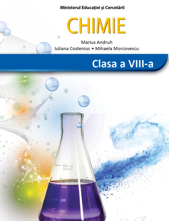 Manualul de CHIMIE pentru clasa a VIII-a este elaborat în conformitate cu Programa școlară pentru disciplina Chimie, clasele a VII-a – a VIII-a, aprobată prin OM nr. 3393/28.02.2017 și are 132 de pagini.