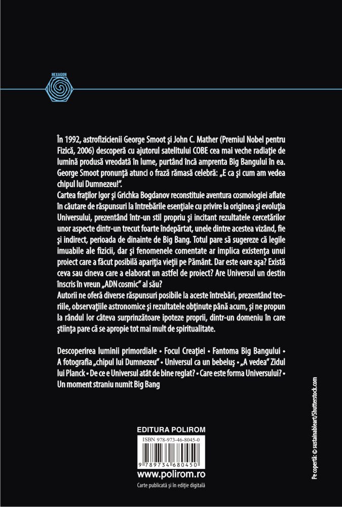Cartea fraților Igor și Grichka Bogdanov reconstituie aventura cosmologiei aflate în căutare de răspunsuri la întrebările esențiale cu privire la originea și evoluția Universului, prezentînd într-un stil propriu și incitant rezultatele cercetărilor unor aspecte dintr-un trecut foarte îndepărtat, unele dintre acestea vizînd, fie și indirect, perioada de dinainte de Big Bang. Totul pare să sugereze că legile imuabile ale fizicii, dar și fenomenele comentate ar implica existența unui proiect care a făcut posibilă apariția vieții pe Pământ. Dar este oare așa? Există ceva sau cineva care a elaborat un astfel de proiect? Are Universul un destin înscris în vreun „ADN cosmic” al său?