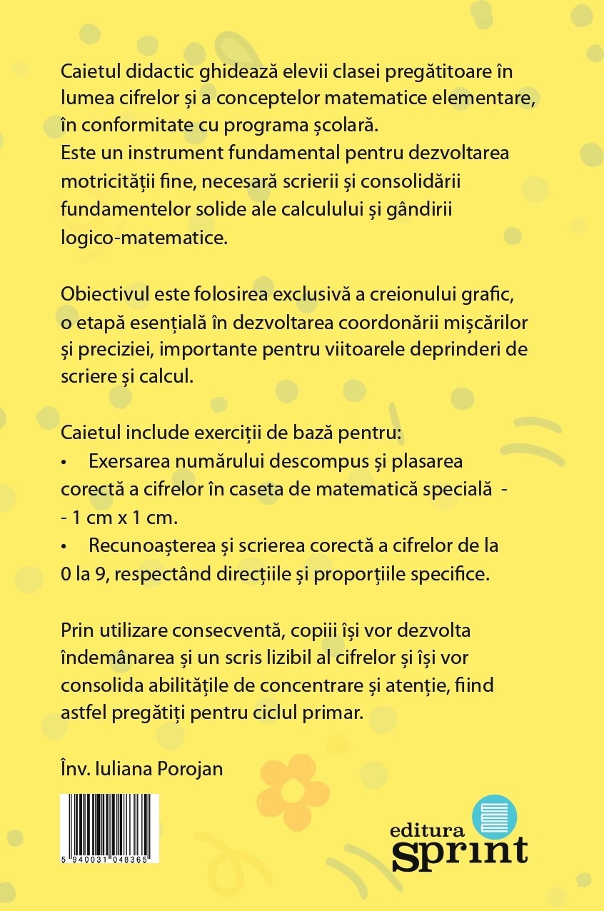 Prin utilizare consecventă, copiii își vor dezvolta îndemânarea și un scris lizibil al cifrelor și își vor consolida abilitățile de concentrare și atenție, fiind astfel pregătiți pentru ciclul primar.